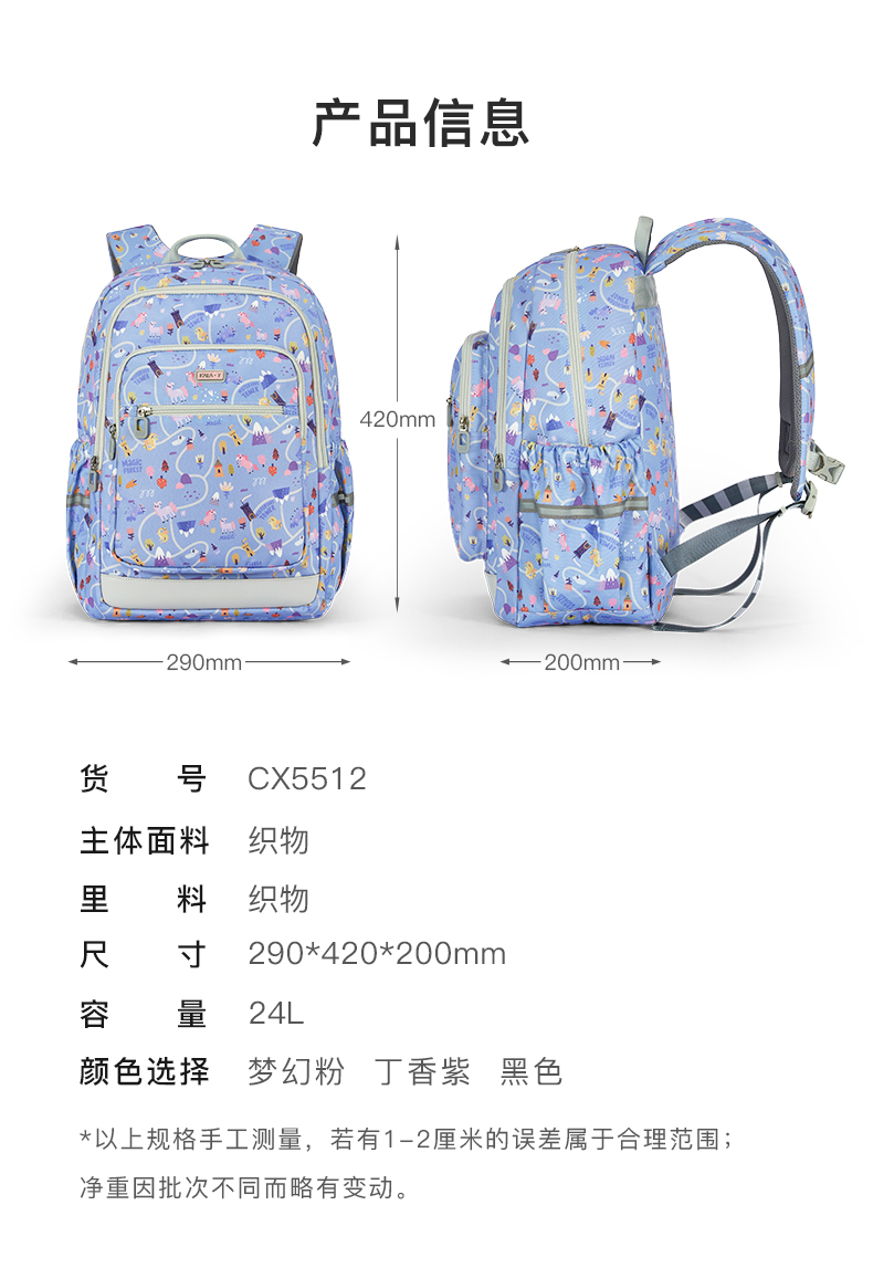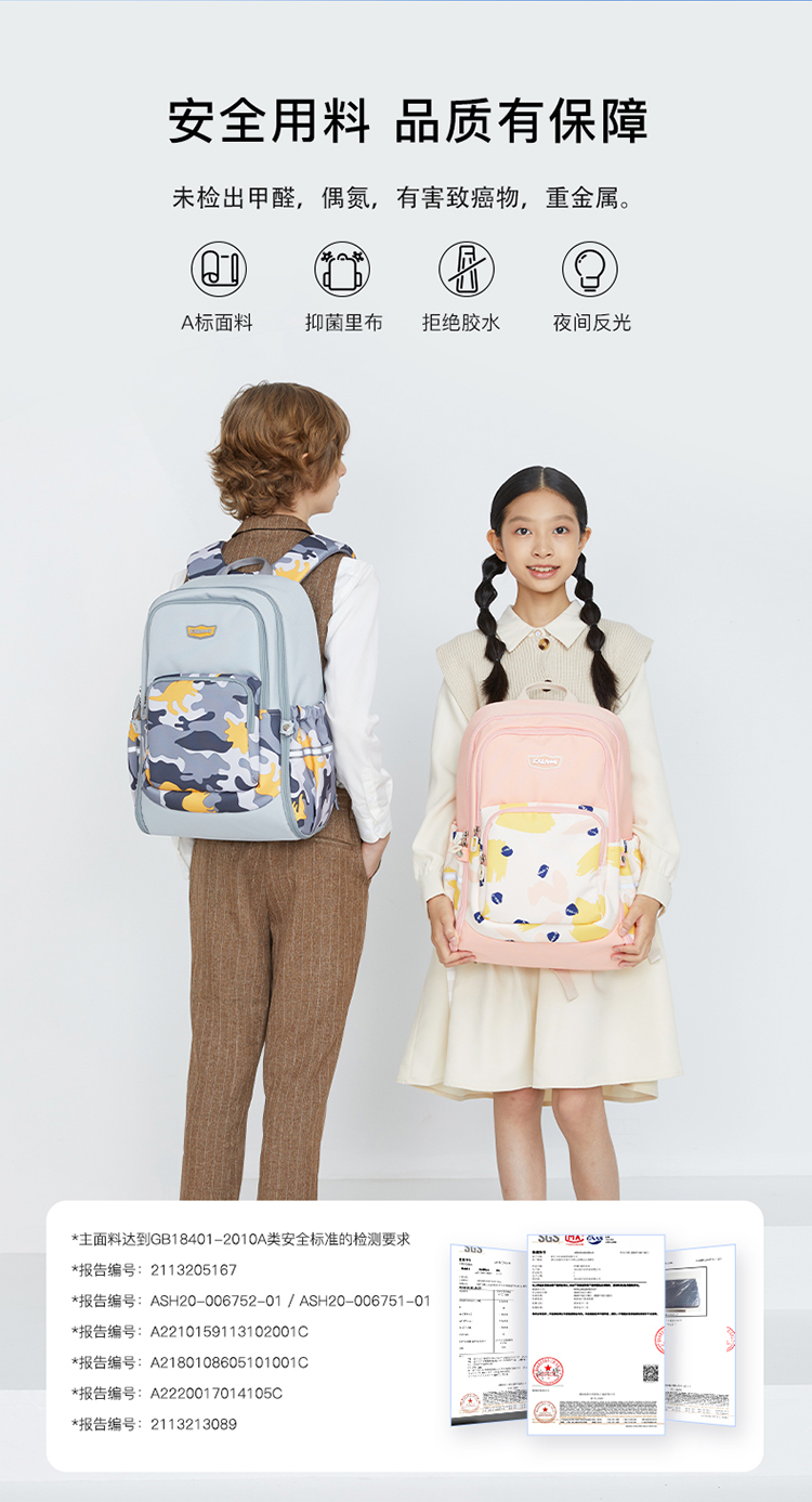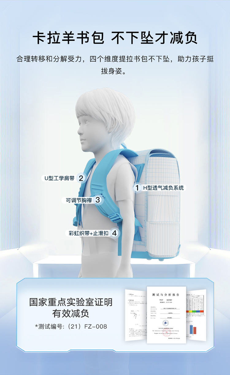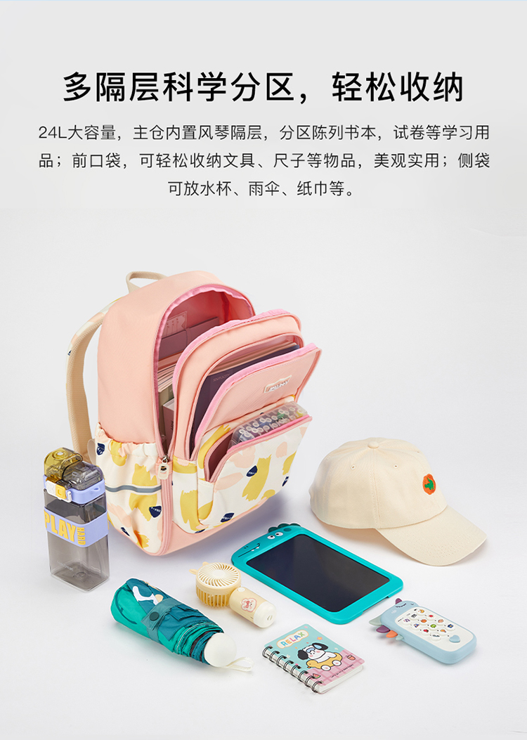 【卡拉羊防下坠减负风琴书包】 健康抑菌荷叶防泼水 多隔层科学分区 一体式可打开结构好清洗