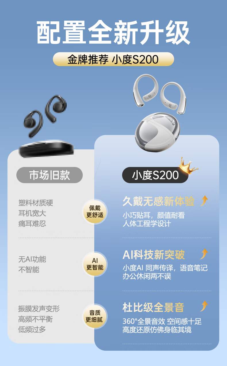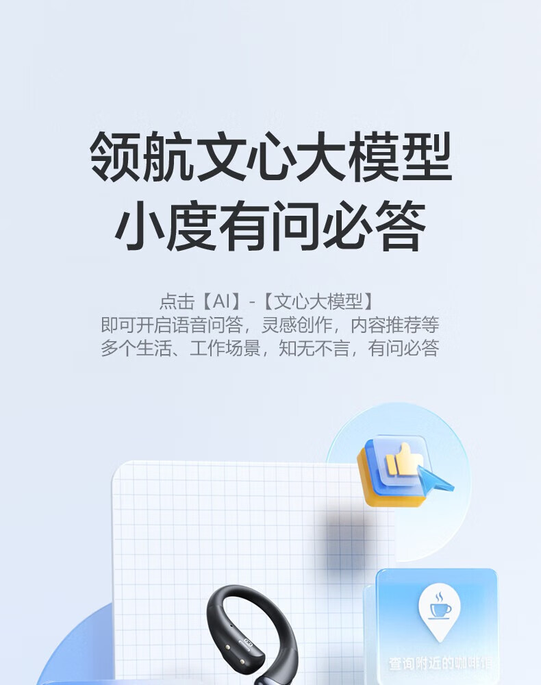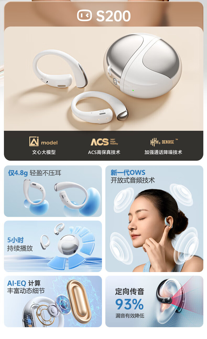 小度S200【AI同声传译】蓝牙耳机挂耳式开放不入耳骨传导概念高音质运动防水通话降噪适用苹果小米华为 送礼佳品 节日礼物