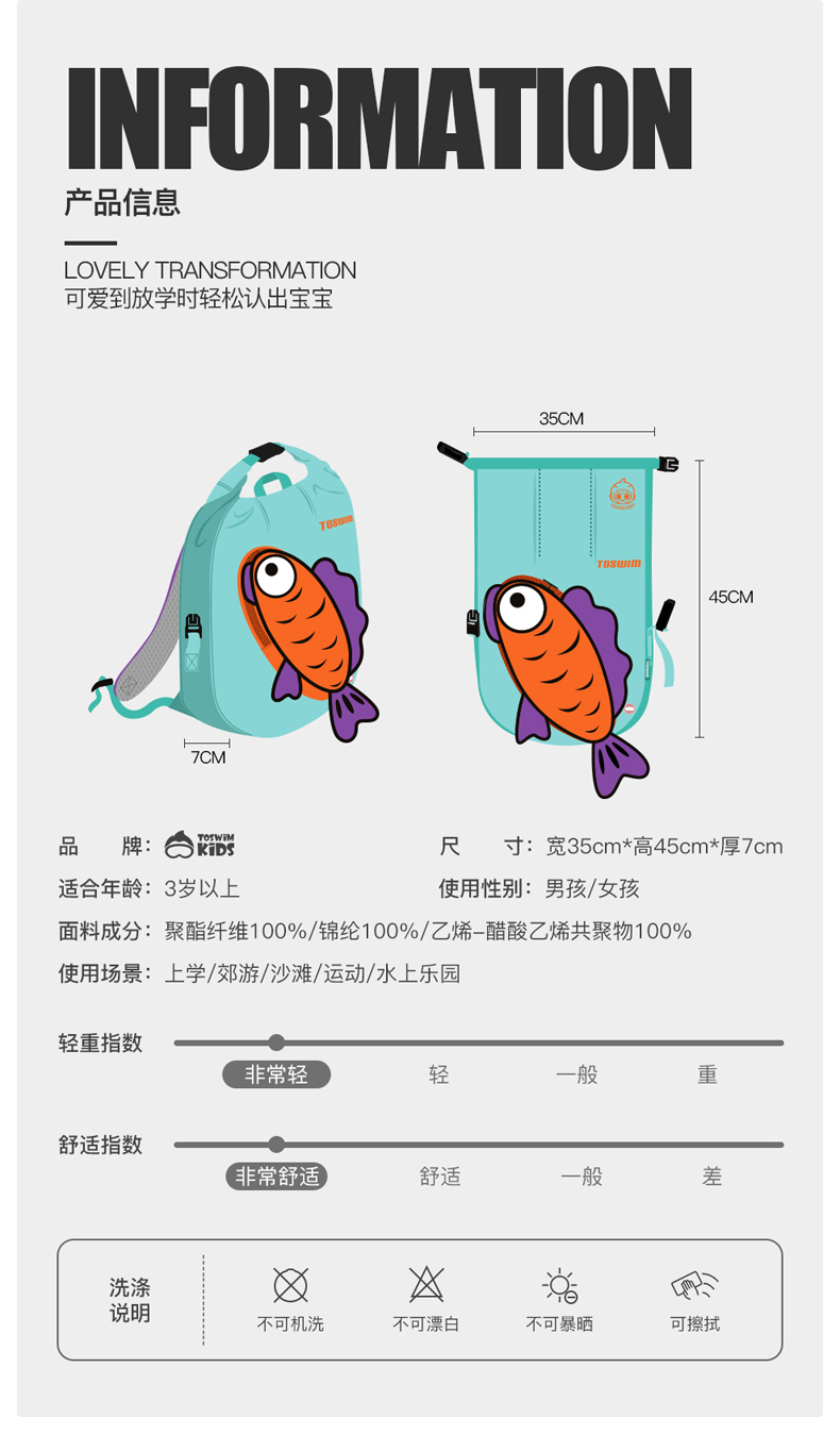 TOSWIM拓胜游泳包儿童干湿分离男女轻便泳衣装备收纳包泳包防水沙滩包