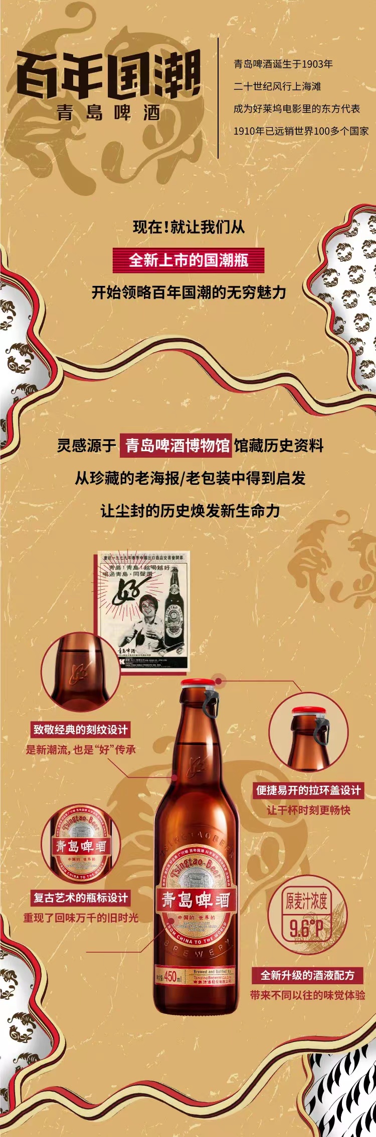 青岛啤酒(Tsingtao)国潮复古瓶 拉环装450ml*12瓶
