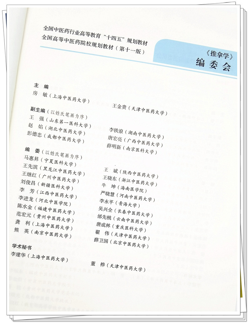 书名:推拿学 十四五规划教材第十一版