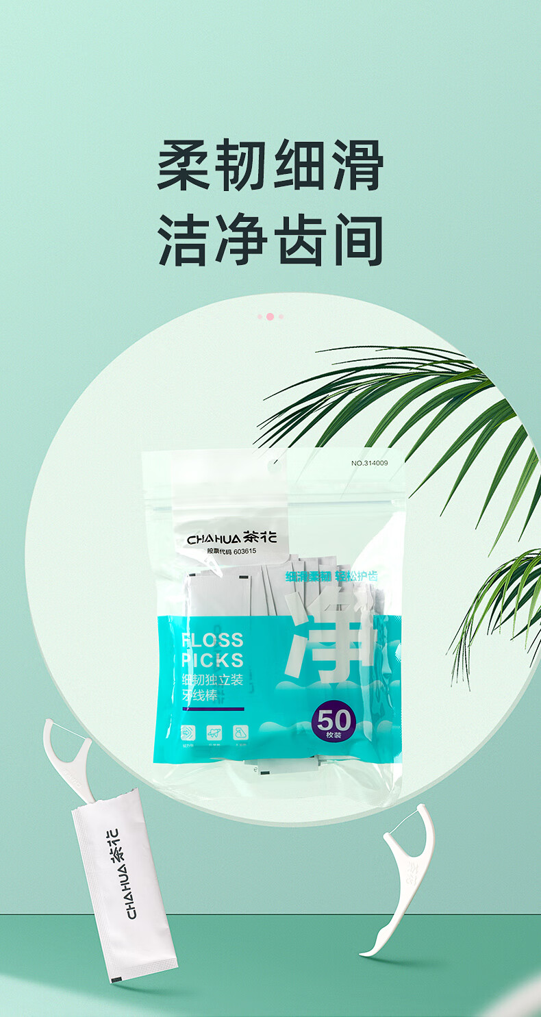 茶花 314009细韧独立装牙线棒50枚 2包装