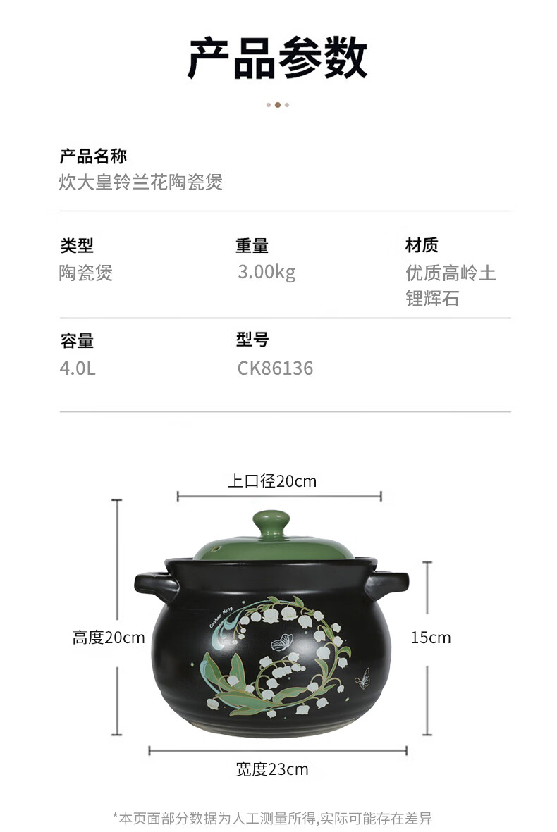 炊大皇 铃兰花陶瓷煲4L CK86136