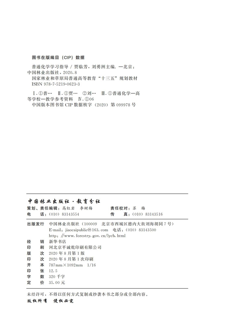 普通化学学习指导 贾临芳 刘勇洲 国家林业和草原局普通高等教育十三五规划教材 0623 中国林业出版社