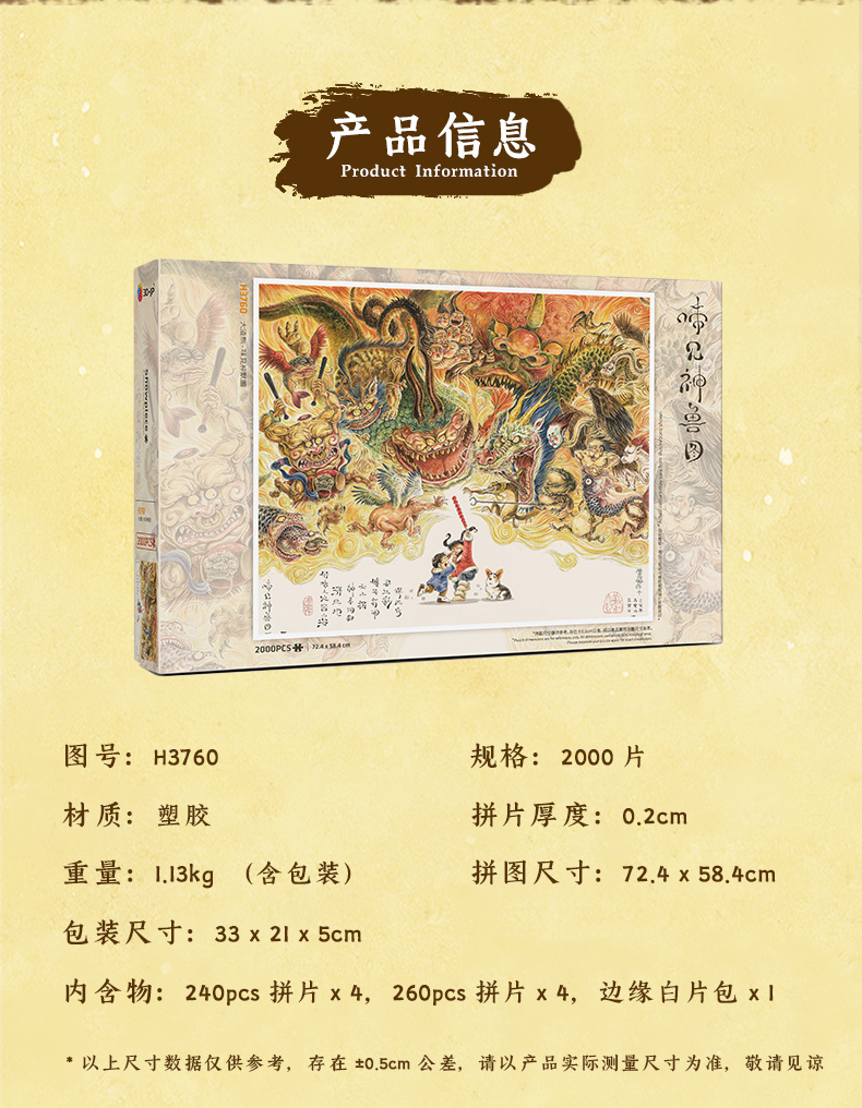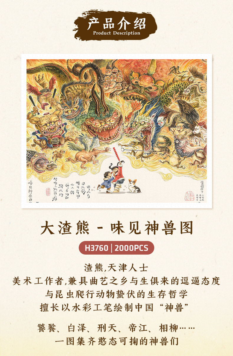 【折扣商品 不退不换】2000片 平面塑料拼图 H3760 大渣熊-味见神兽图