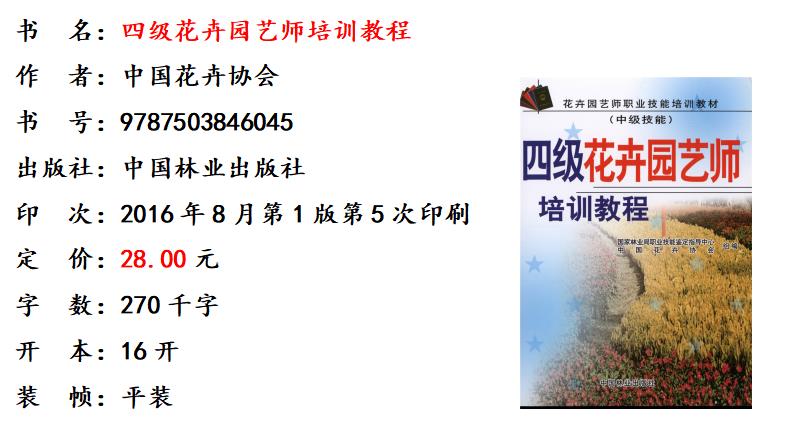 四级花卉园艺师培训教程 中级技能 4604 花卉园艺师职业技能培训教材 园艺师相关基础知识分花卉类与识别嫁接育苗整形修剪绿化施工