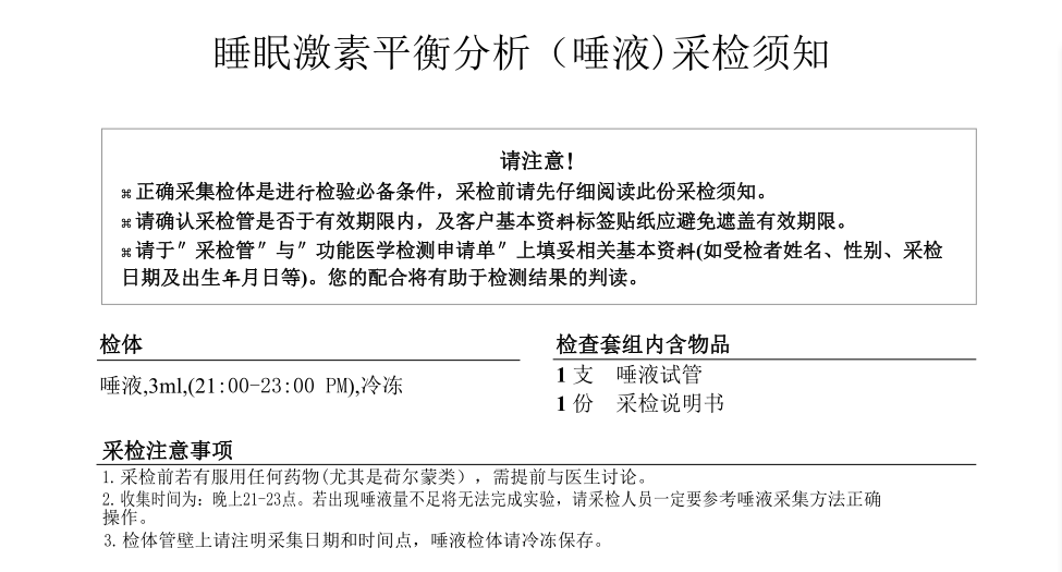 【检测】睡眠荷尔蒙平衡分析(唾液)华测0815