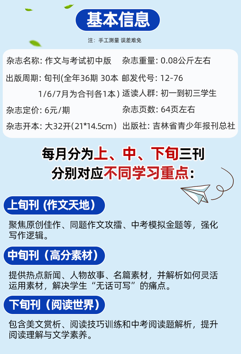 《作文与考试初中版》2026年全年订阅共36期7-9年级中学生中考作文素材(可备注起订月)