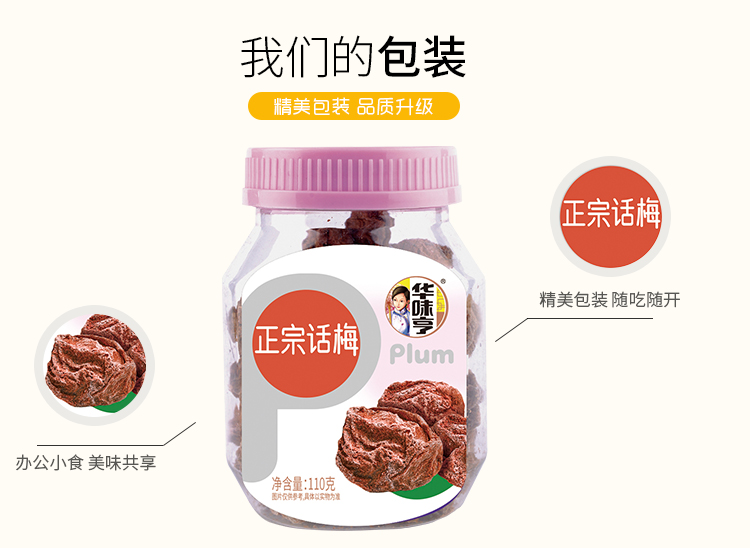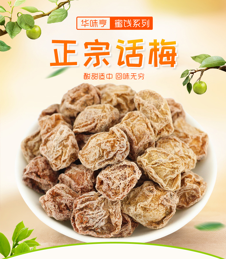 华味亨 正宗话梅 蜜饯果干 酸甜梅咸话梅 杭州特产零食 话梅干110g*3罐