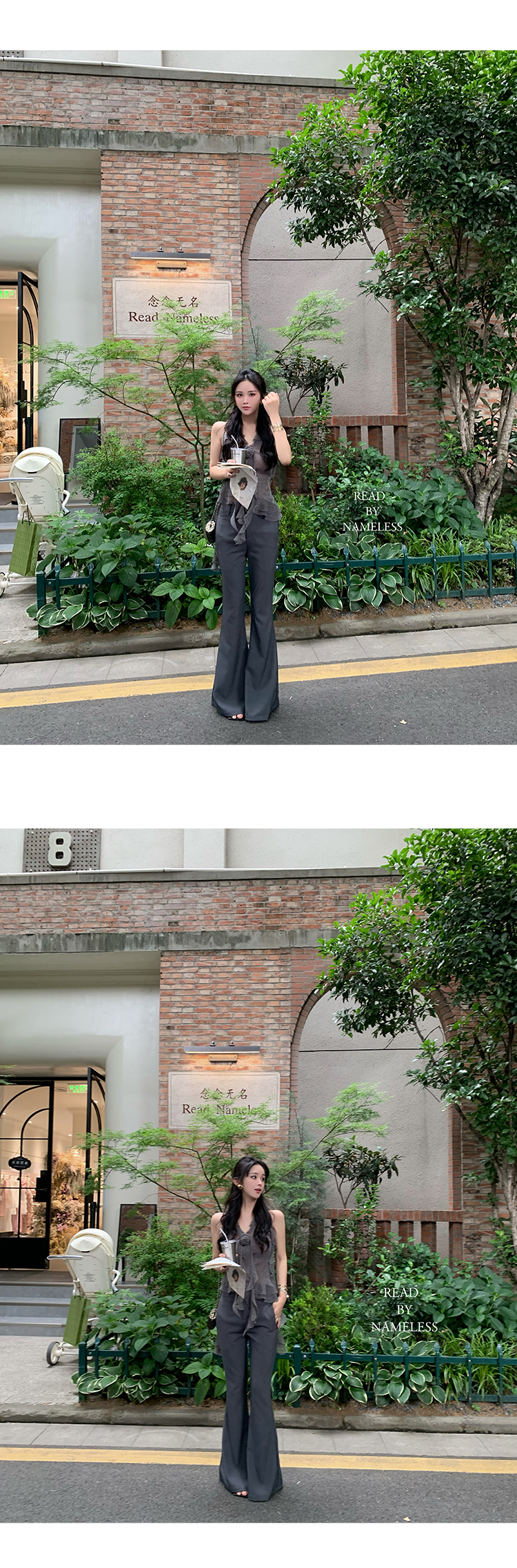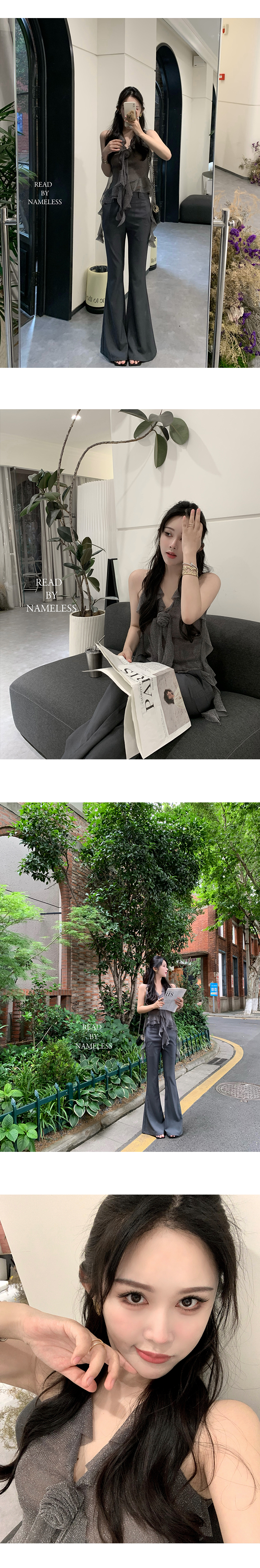 Read Nameless /灰色银丝弹力纯欲上衣+灰色西装面料喇叭裤