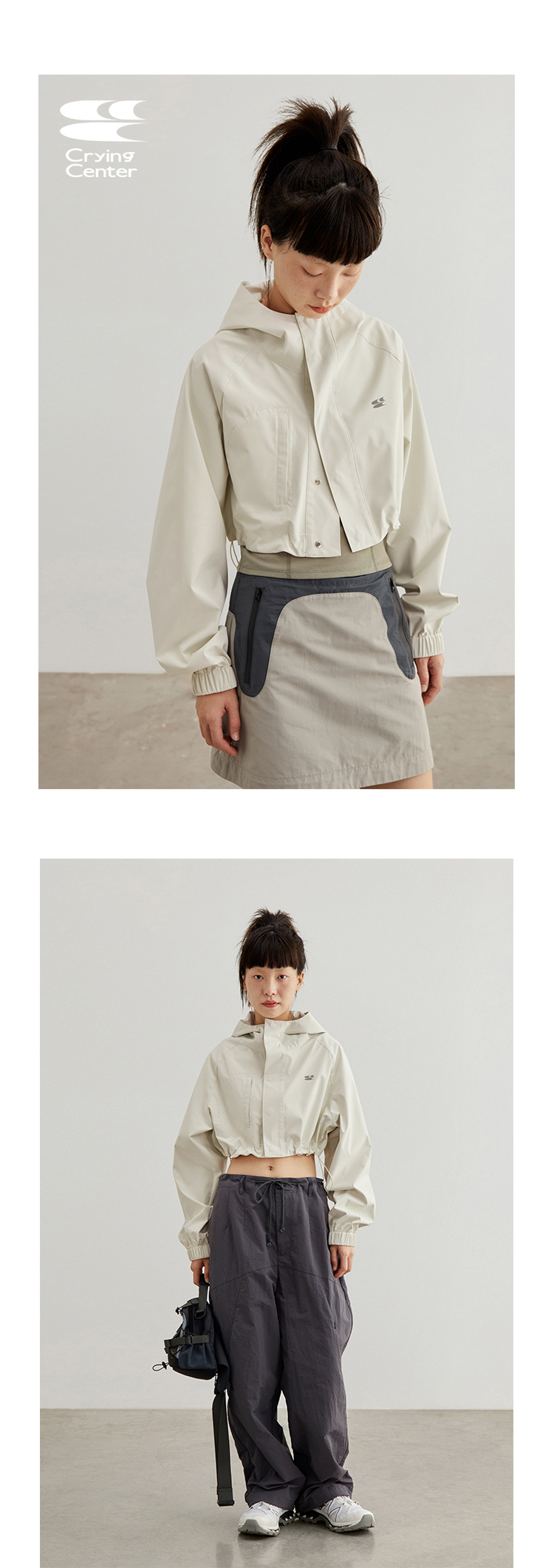 CryingCenter 奶油白防晒户外运动短款风衣 哭喊中心