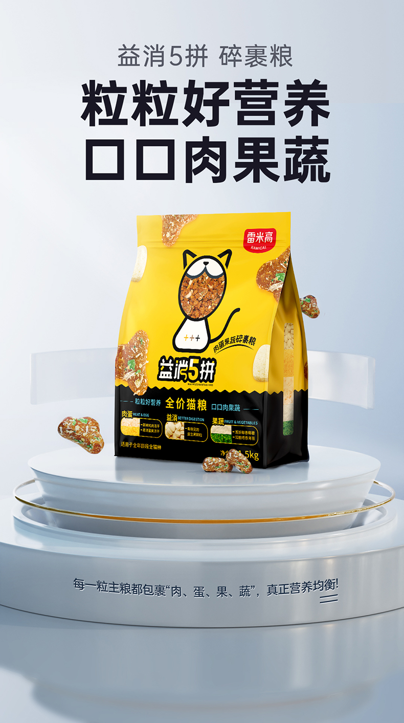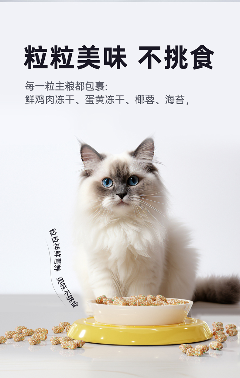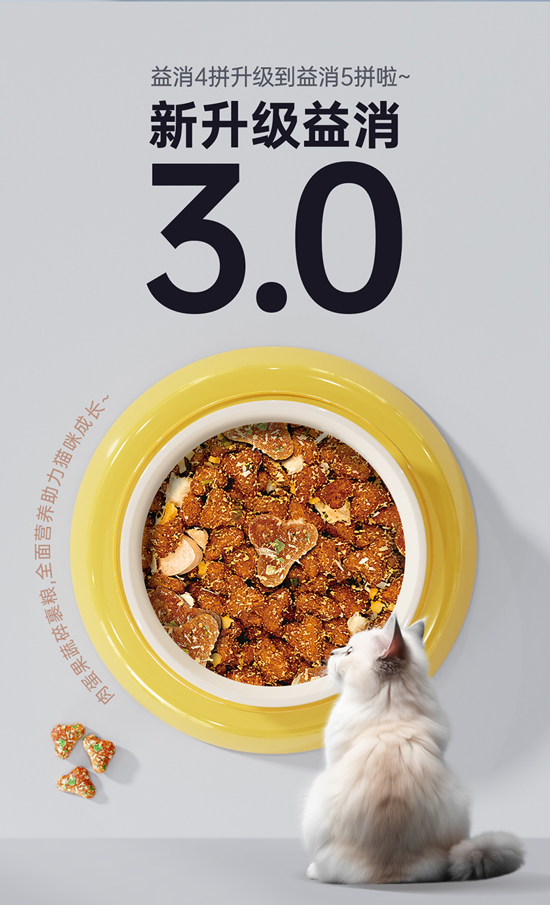 【49.9任选六件】250g益消五拼宠物蛋黄原切冻干益生菌全价猫粮1.5kg囤粮套装