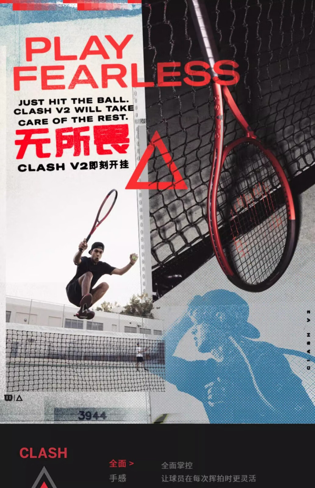 威尔胜(Wilson)网球拍碳纤维CLASH V2系列成人专业网球拍全碳素碳纤维比赛训练拍 WR074311U2-100L V2.