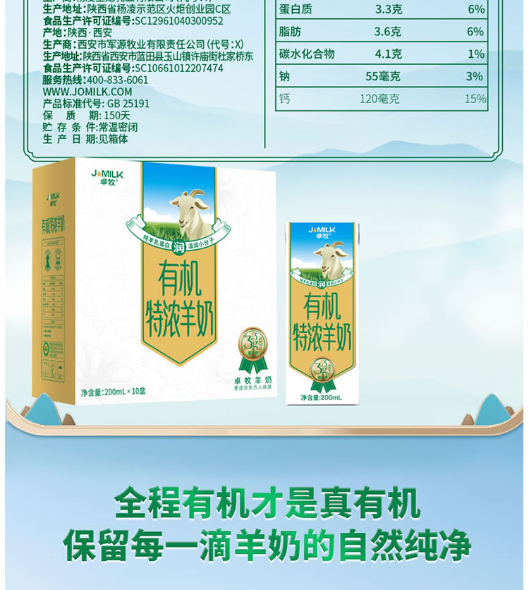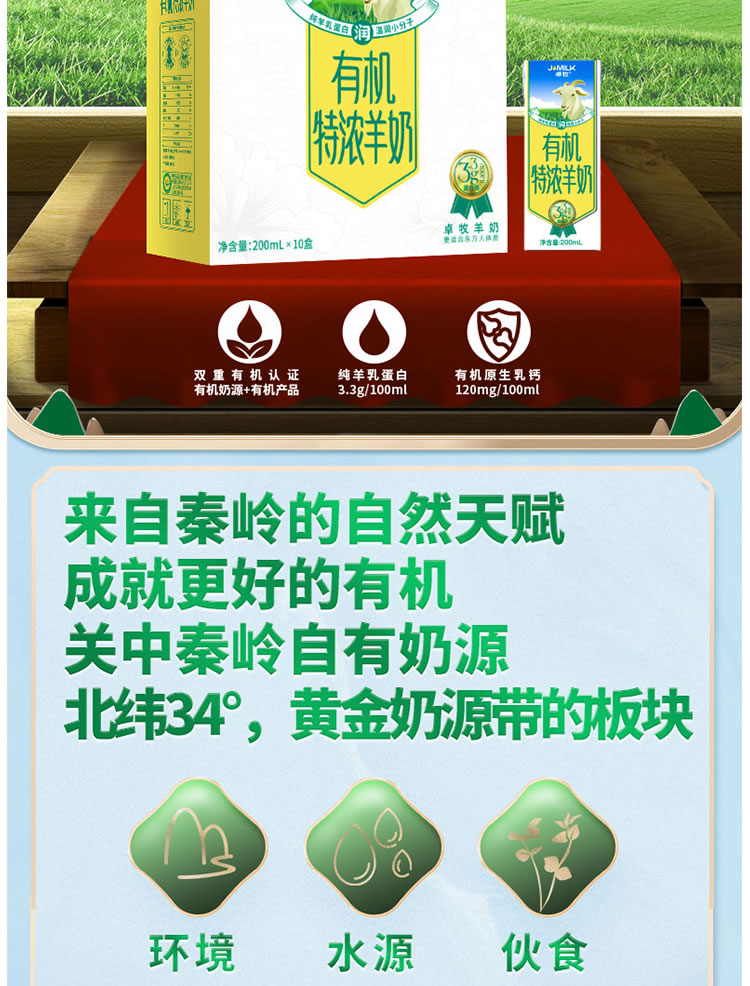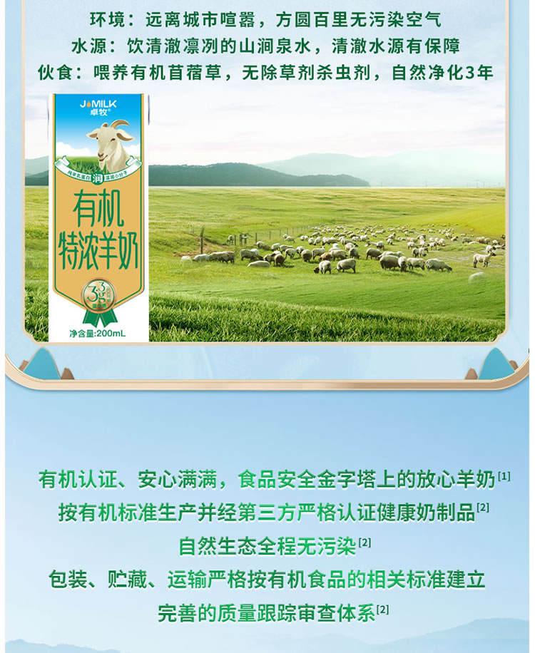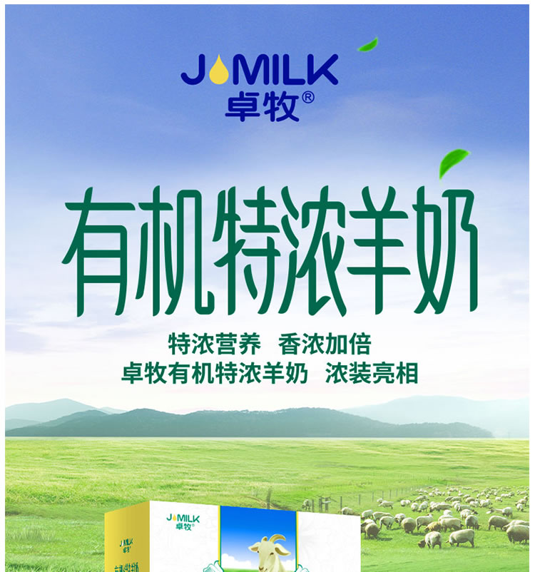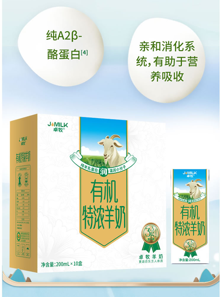 【卓牧羊奶官旗】【嗨购珠海专属】卓牧JOMILK 有机特浓羊奶 A2蛋白双重有机认证 3.3g蛋白全脂高钙山羊奶鲜奶 有机特浓羊奶10盒装