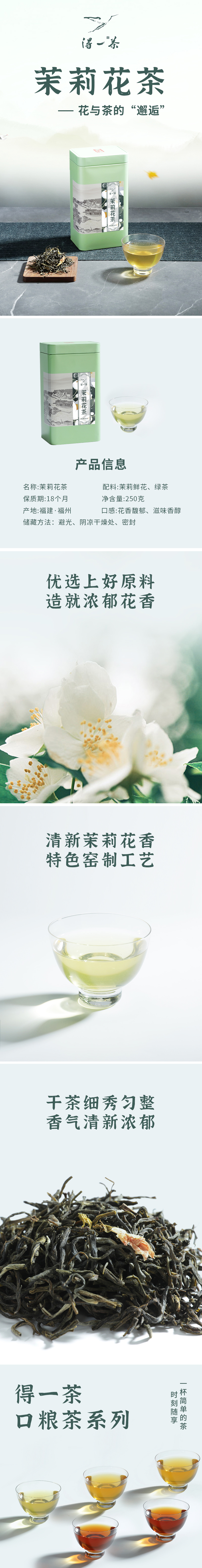 得一茶 福建茉莉花茶罐装250g