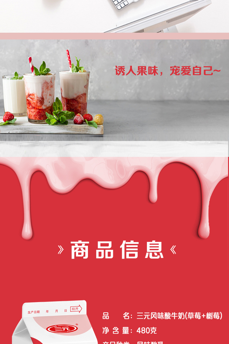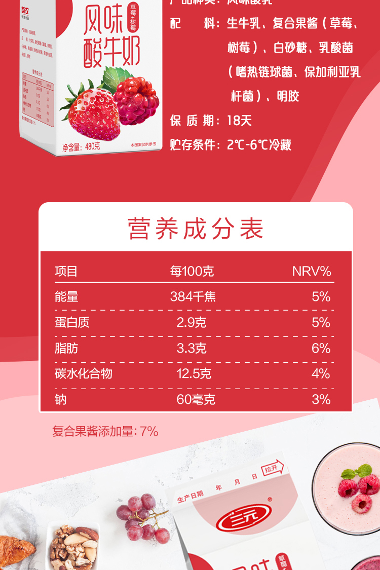 【自提-低温】果之养果料酸牛奶-草莓+树莓480g*2