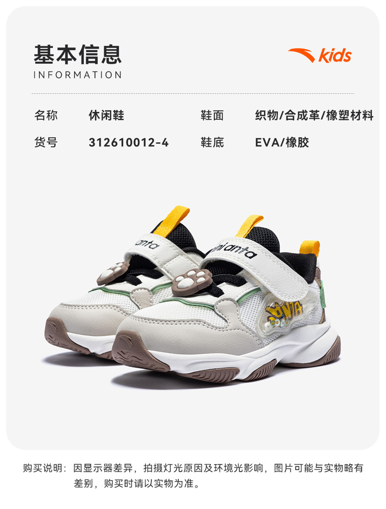 喵喵鞋新年款安踏儿童男婴童休闲鞋2026年上新款男宝宝二段稳步鞋312610012
