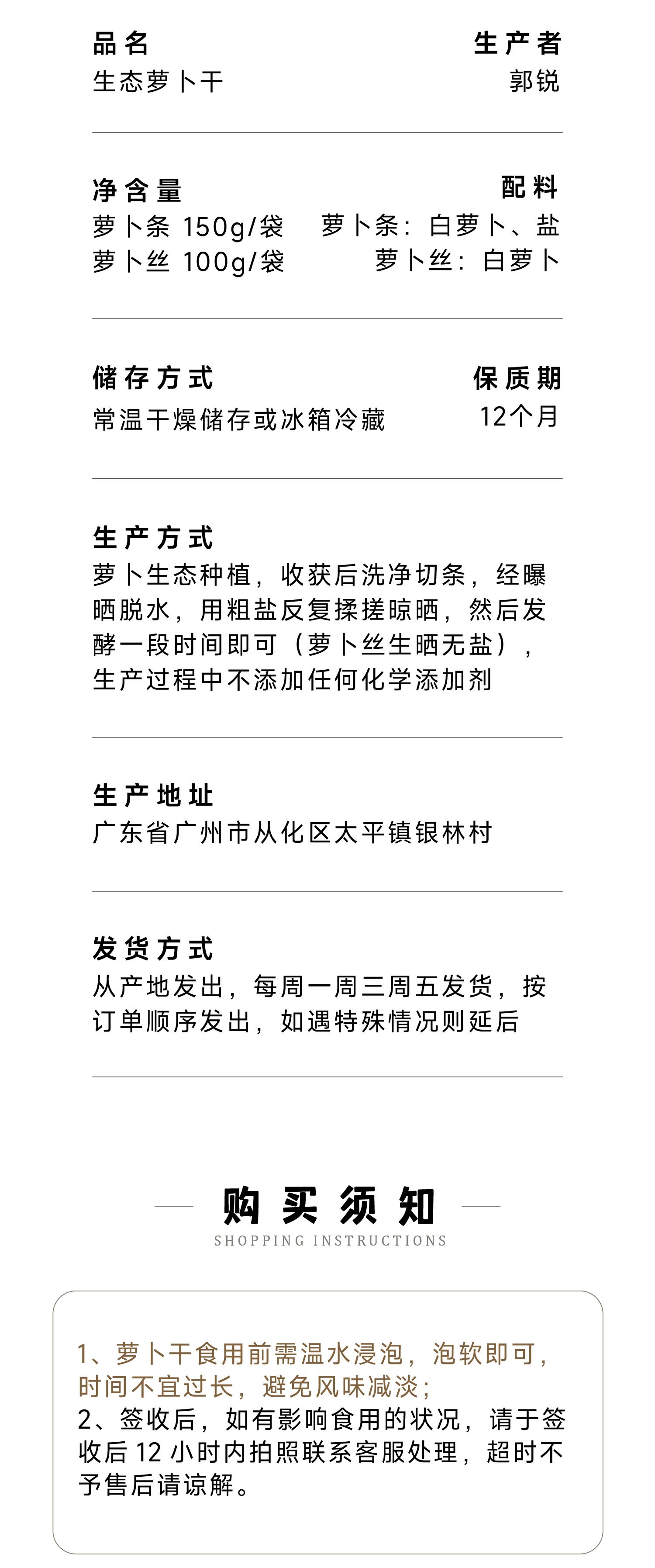 生态萝卜干(萝卜条/萝卜丝)| 合作农友生产,产自广州从化,生产者:郭锐 *【公平贸易农人定价】