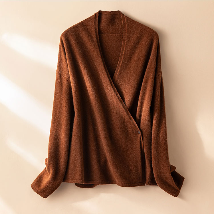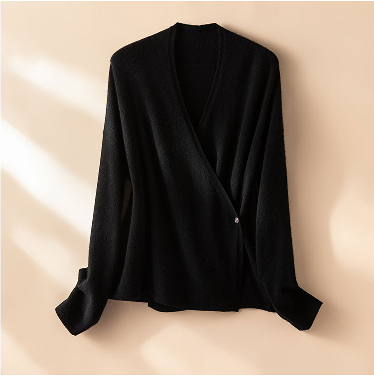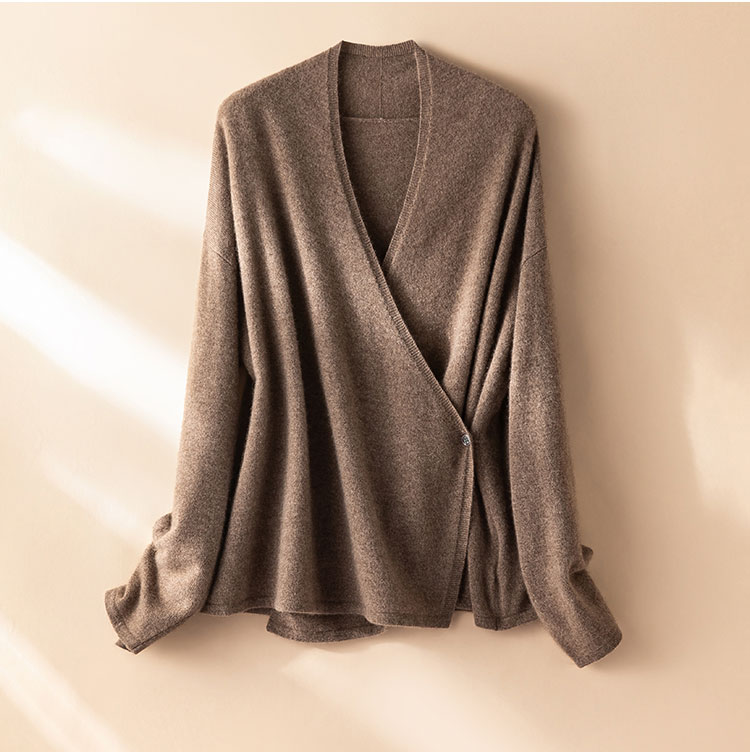 法式极简~羊绒V领针织开衫女不对称交叉气质宽松披肩外套R25100
