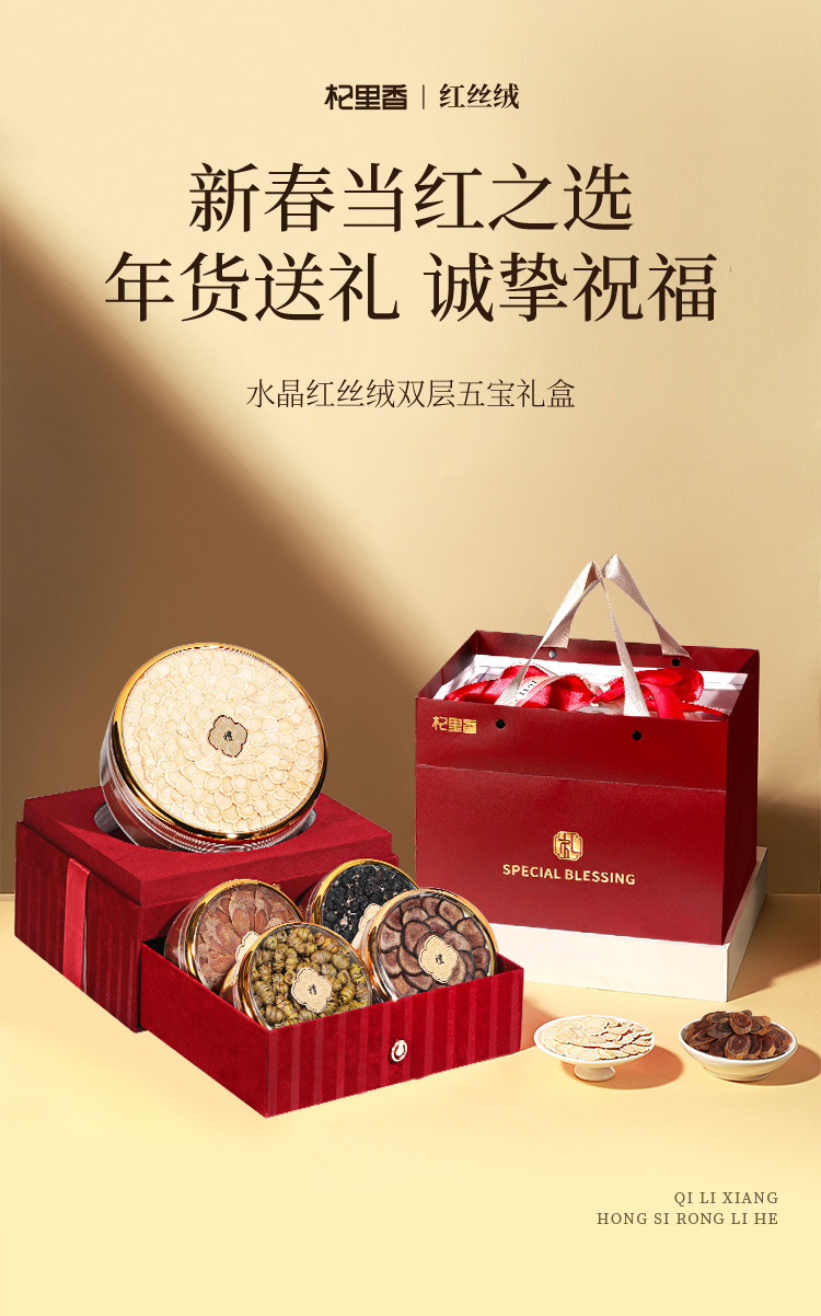 【端午有礼】杞里香220g、230g双层红丝绒5拼礼盒220g西洋参红参牛头果黑枸杞铁皮石斛鹿茸礼盒;230g西洋参当归红参鱼胶牛头果黑枸杞礼盒年货新年礼盒礼品送礼送父母送长辈送领导