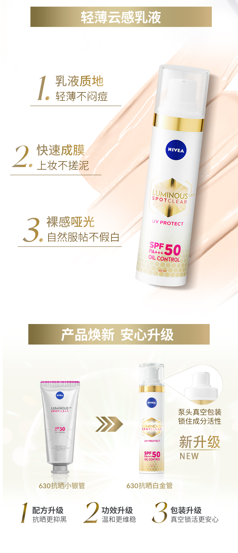 【保税仓】妮维雅LUMINOUS630淡斑UV防护精华乳SPF50 PA+++