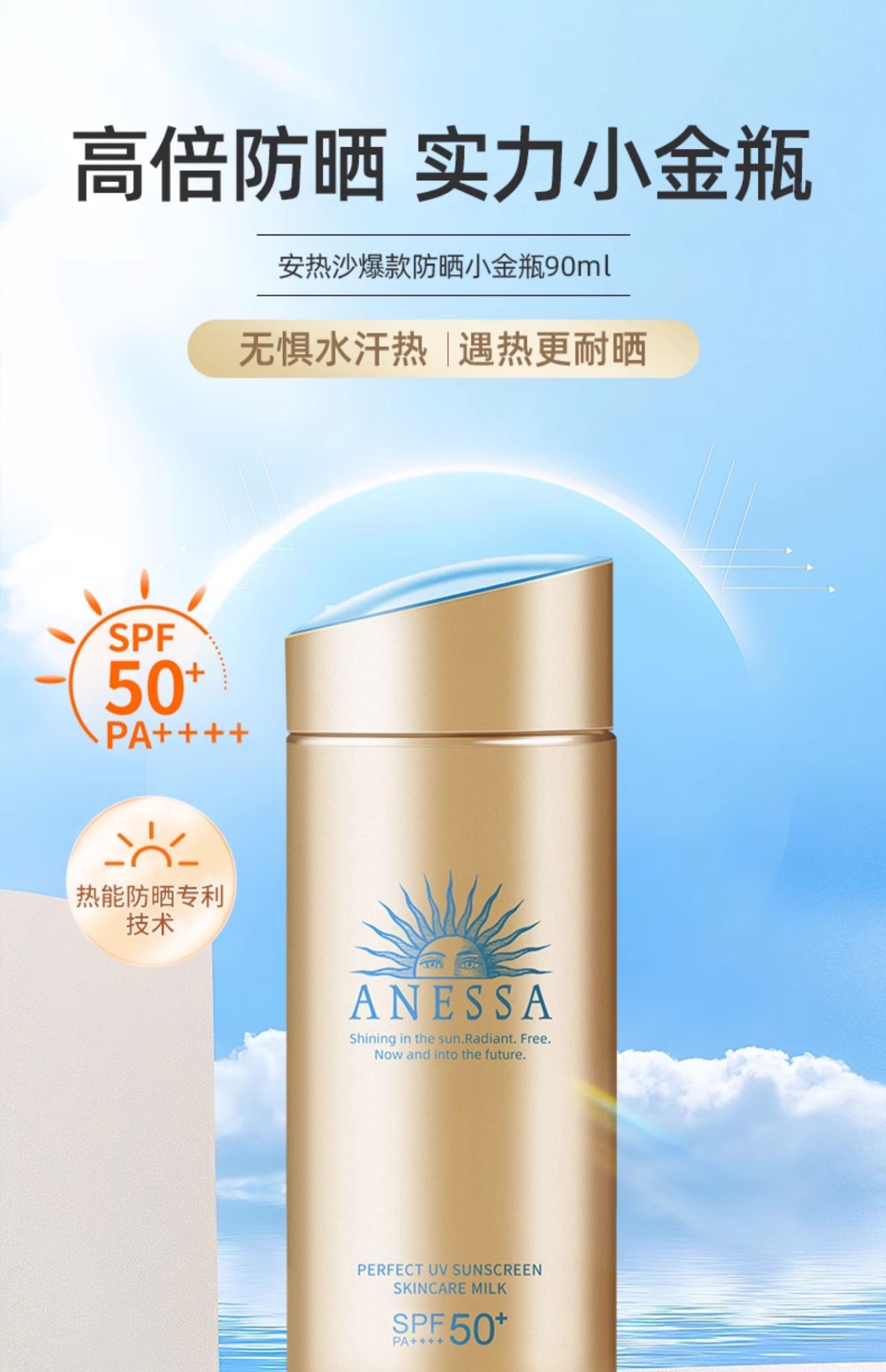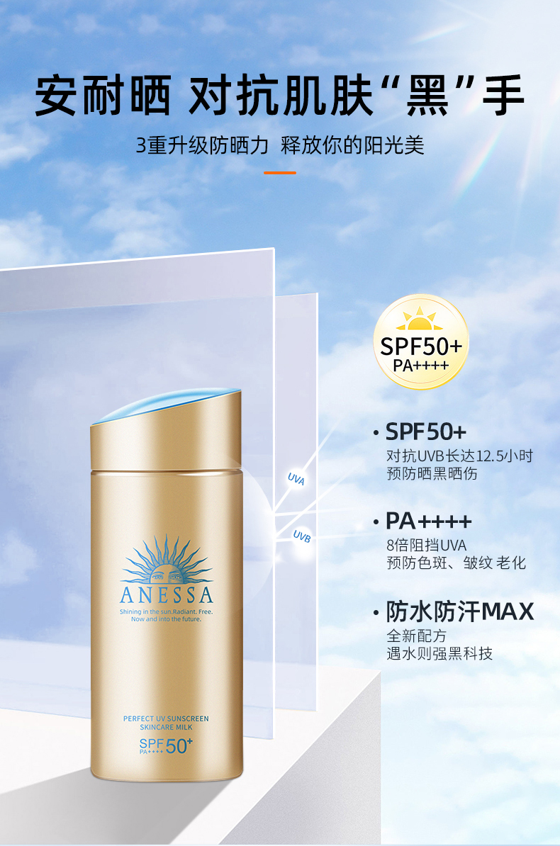 【保税仓】资生堂安耐晒小金瓶防晒霜60ml送防晒眼膜贴2片(2022款)效期26.2月