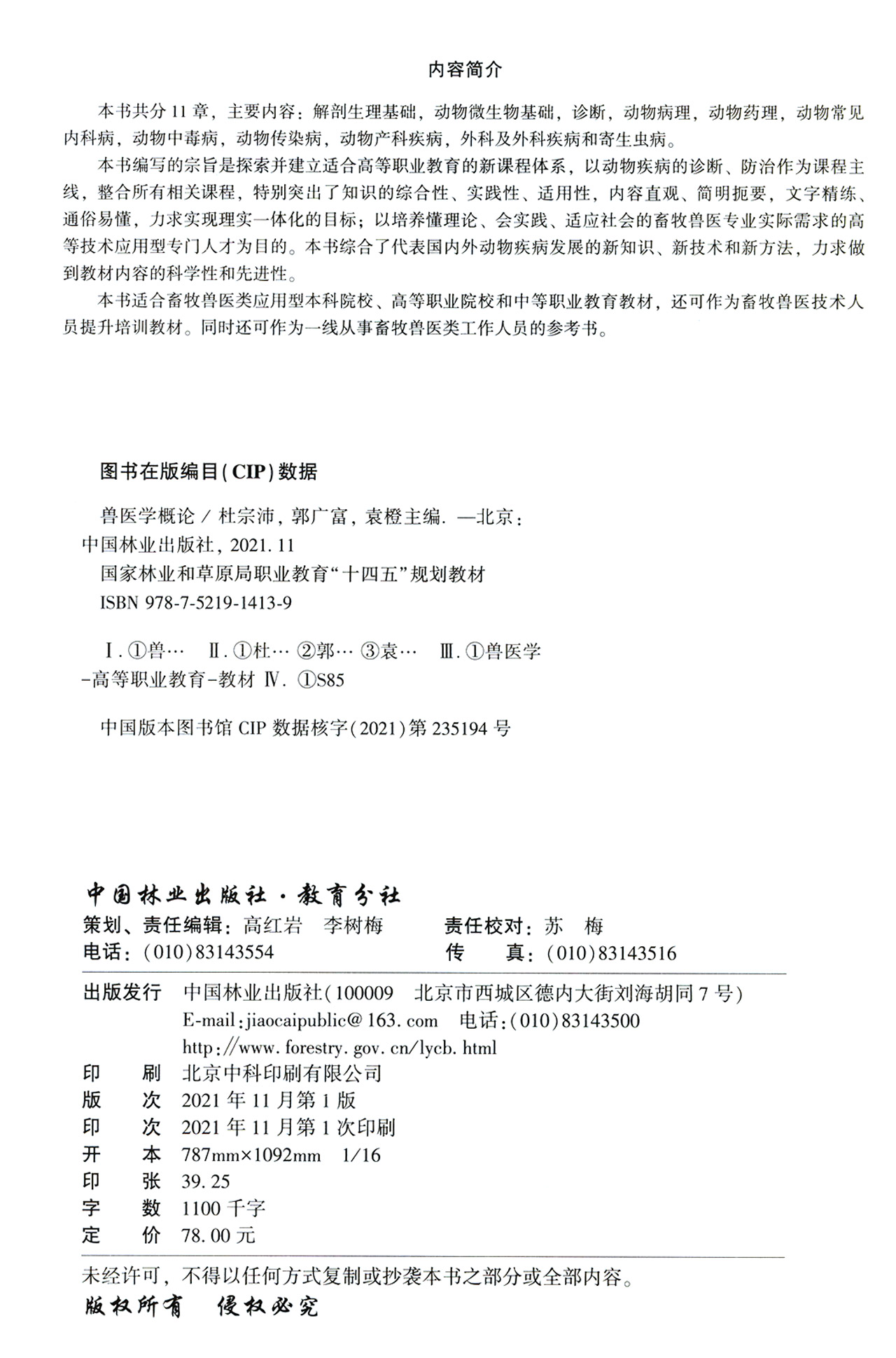 兽医学概论(国家林业和草原局职业教育十四五规划教材) 杜宗沛//郭广富//袁橙 1413 中国林业出版社