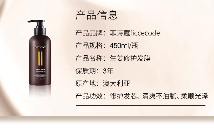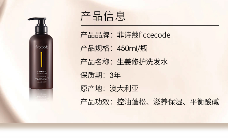 菲诗蔻 控油蓬松去油 生姜修复洗发水/生姜修复发膜 450ml/瓶