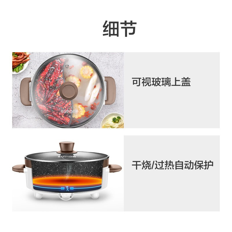 苏泊尔(SUPOR)H30YK17Y鸳鸯多功能电火锅多用途麦饭石锅 电热锅 5升大容量 电煮锅 不粘涮涮锅