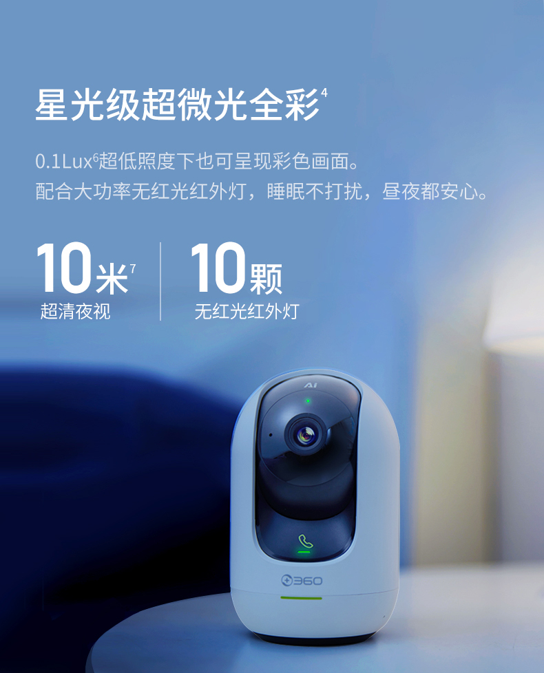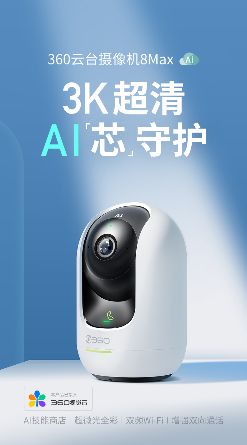 【专属】360 家用监控摄像头智能摄像机 3K云台版500万双频wifi超高清星光微光全彩双向通话母婴看护 云台8Max AI版
