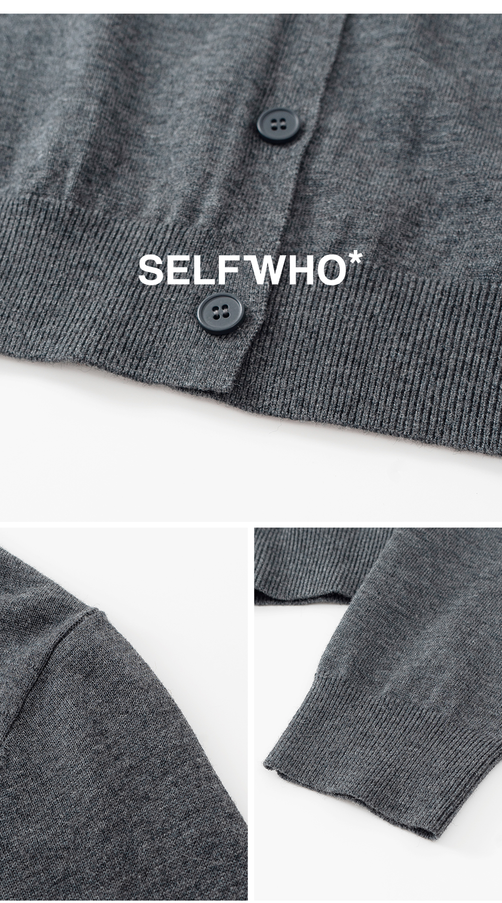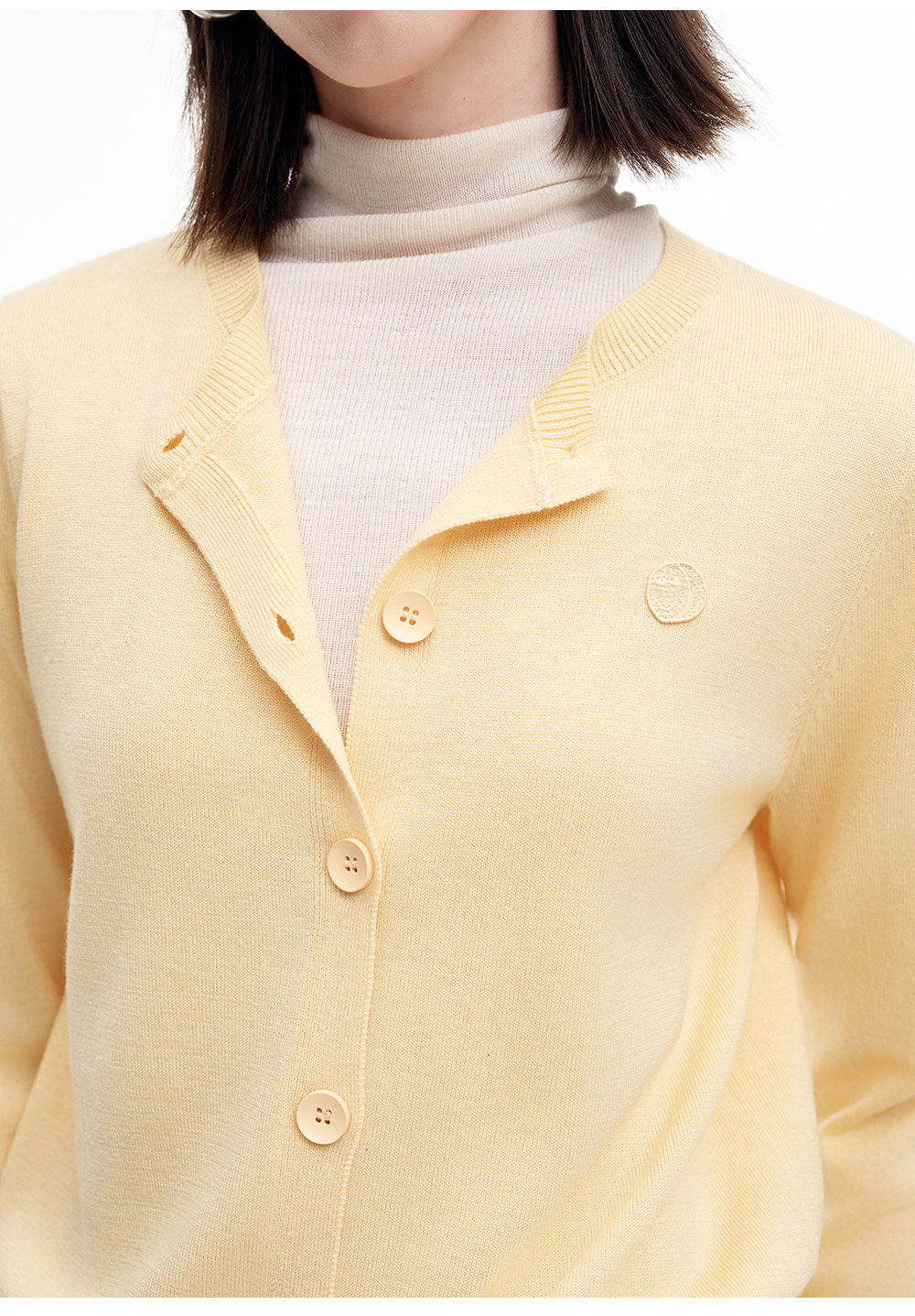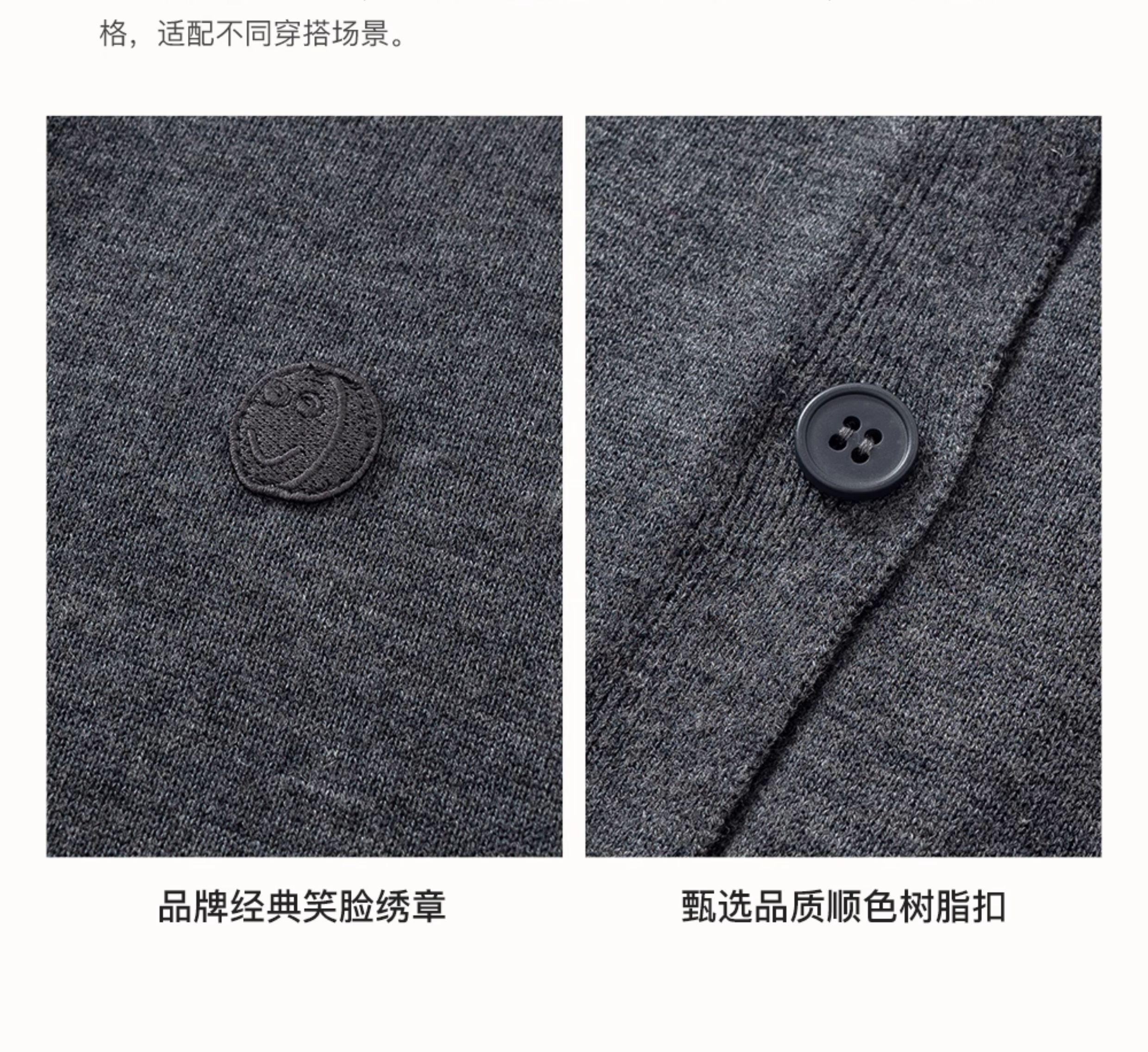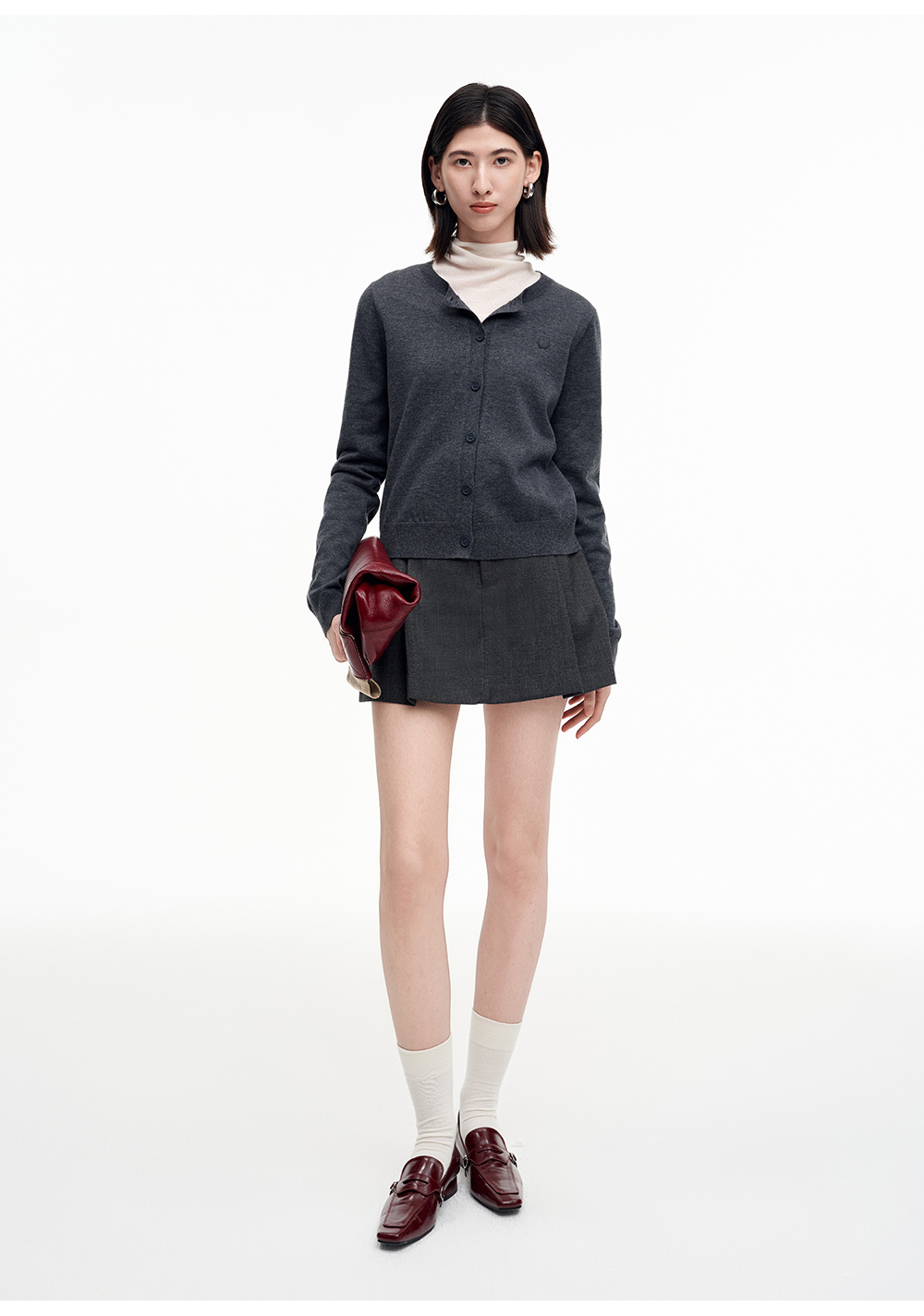 SELFWHO绵羊毛混纺笑脸绣章针织开衫女2025秋季新款保暖圆领上衣