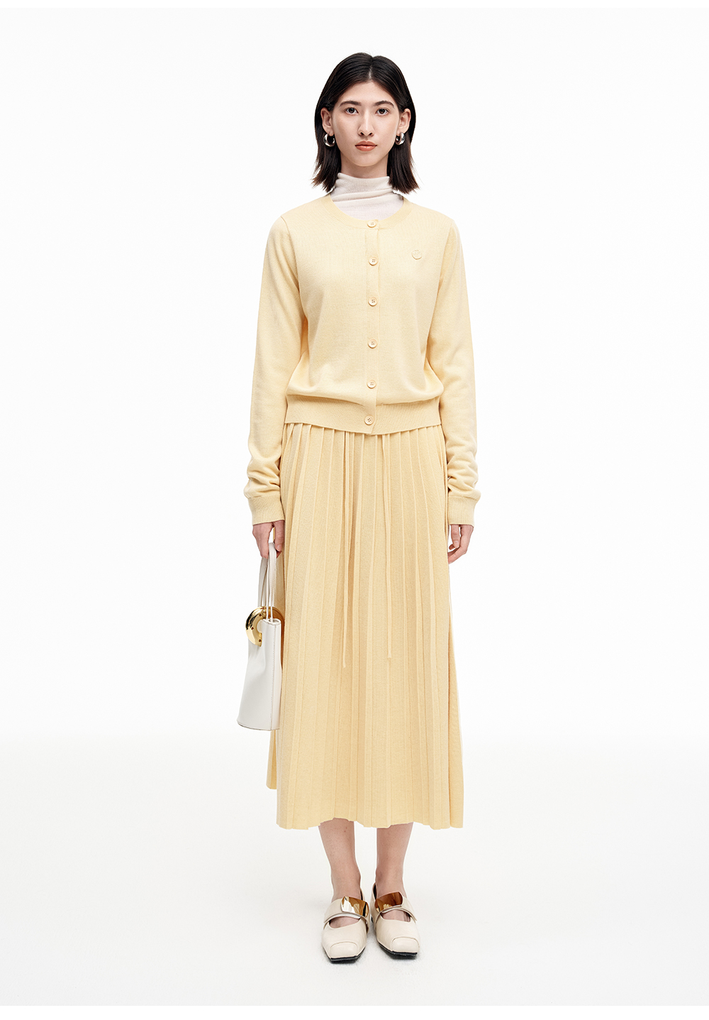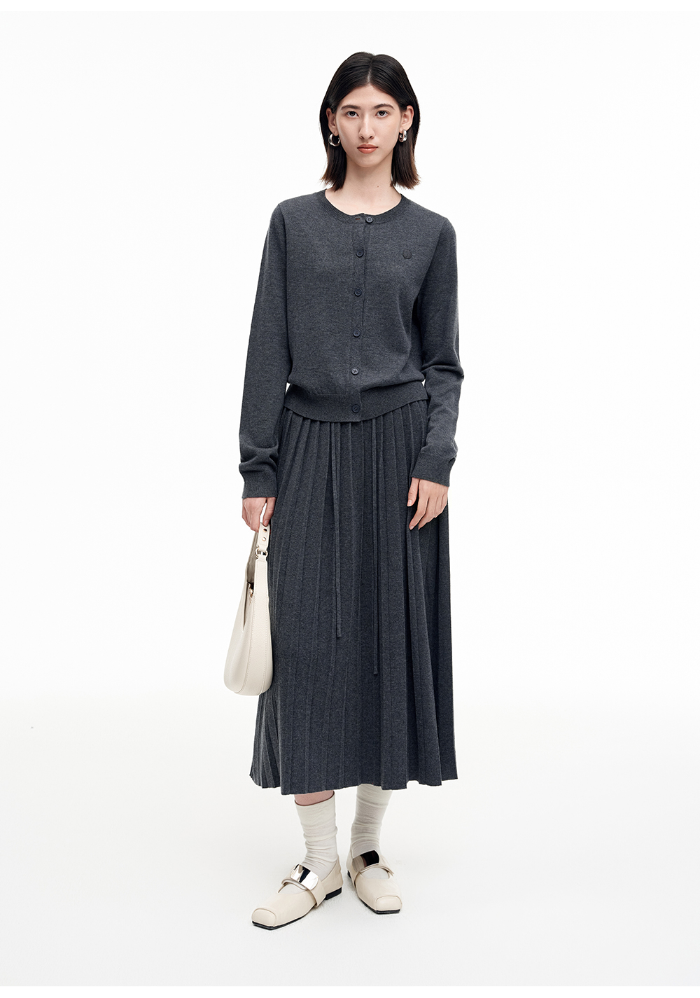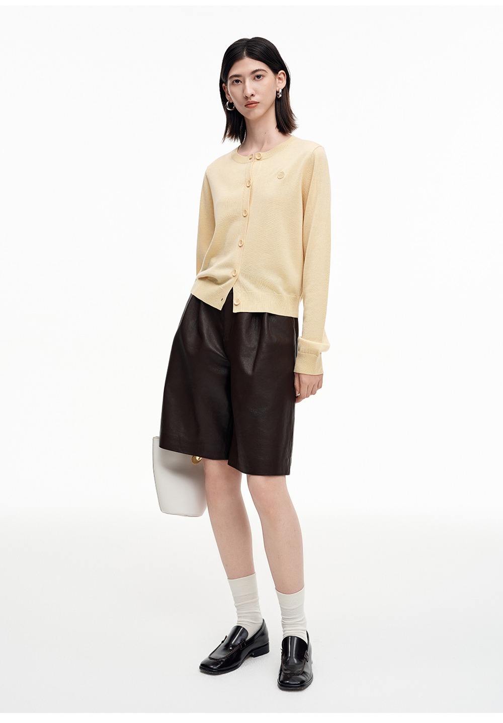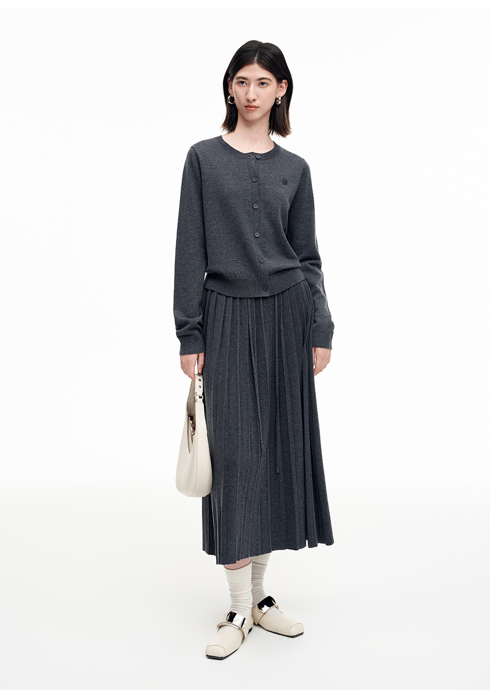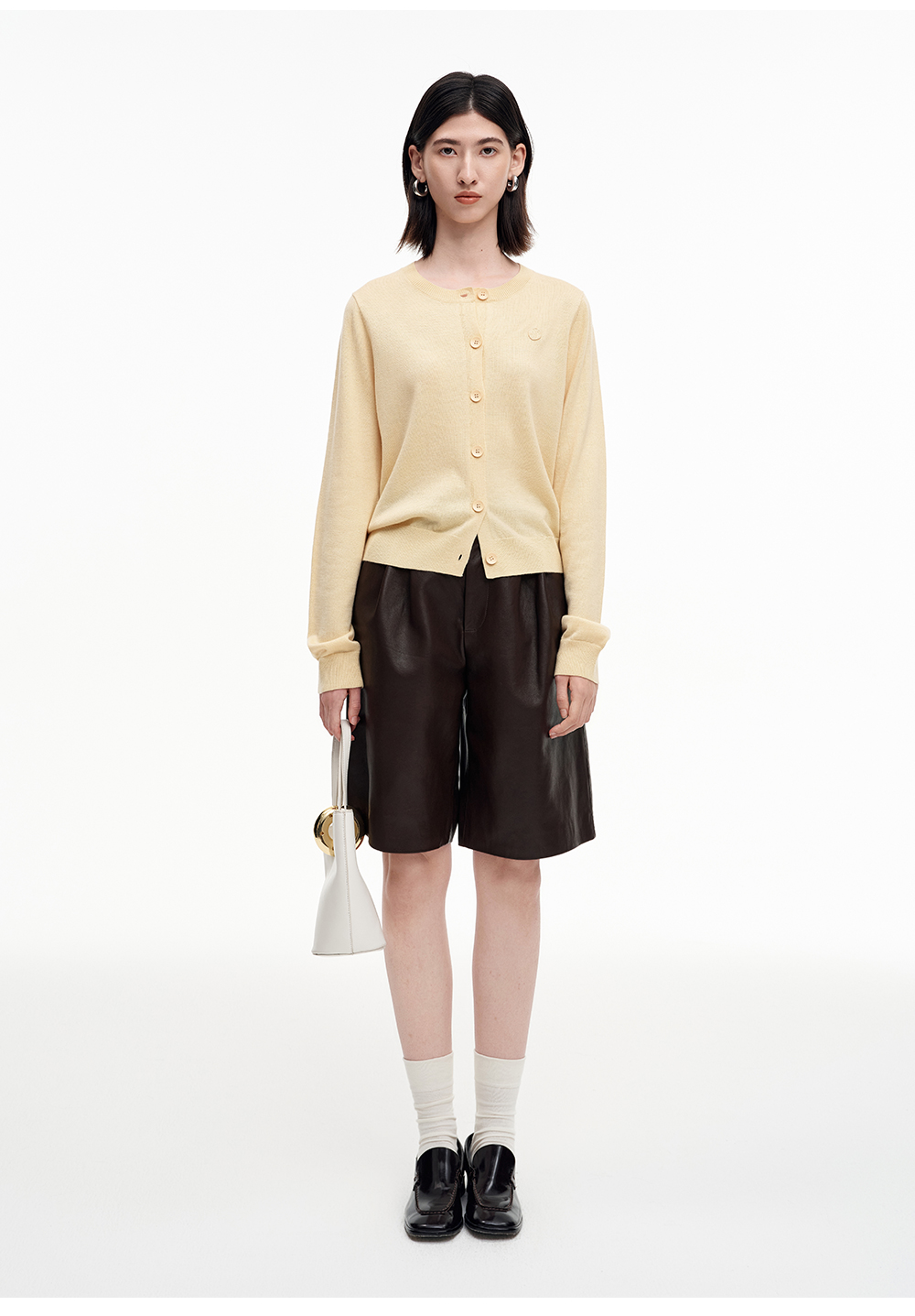 SELFWHO绵羊毛混纺笑脸绣章针织开衫女2025秋季新款保暖圆领上衣