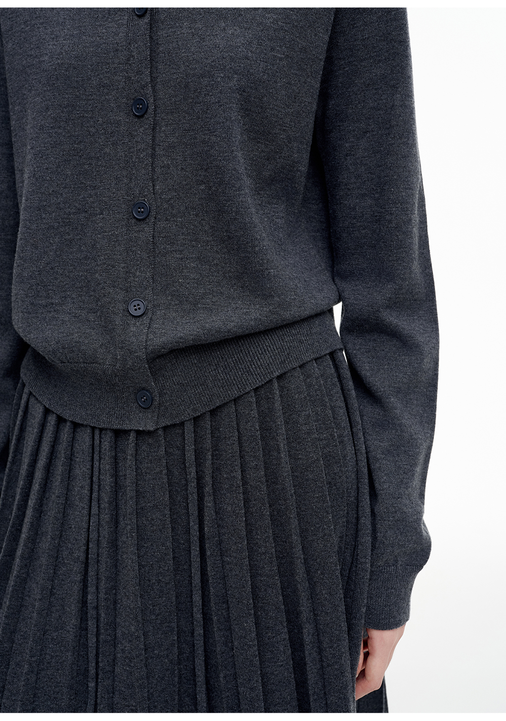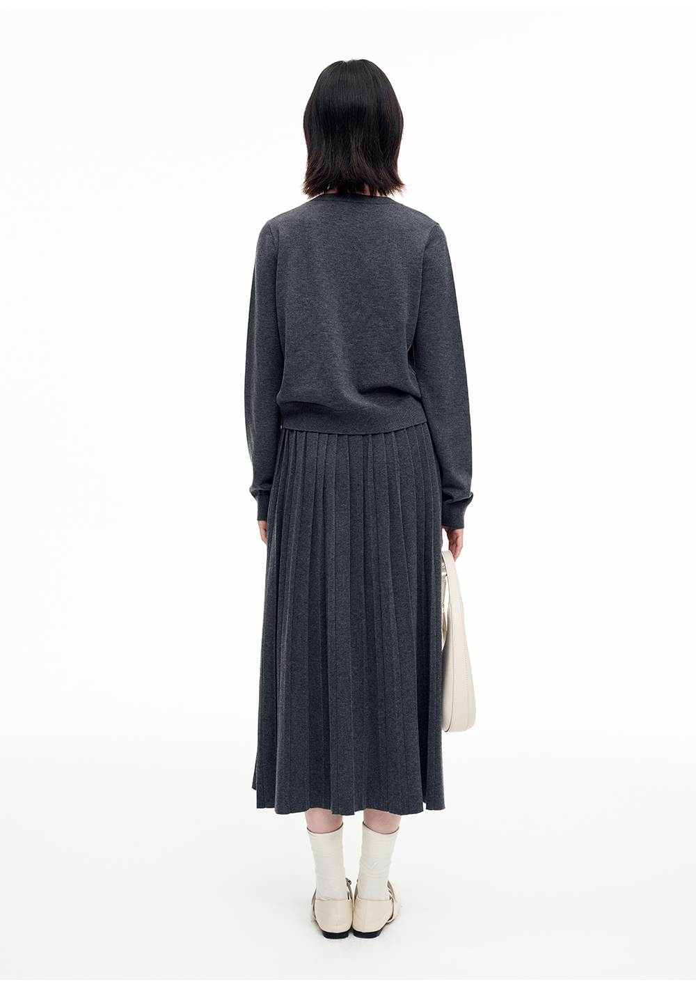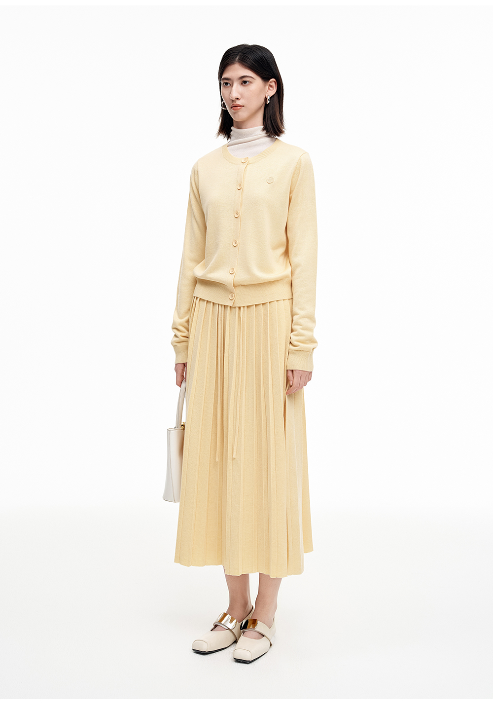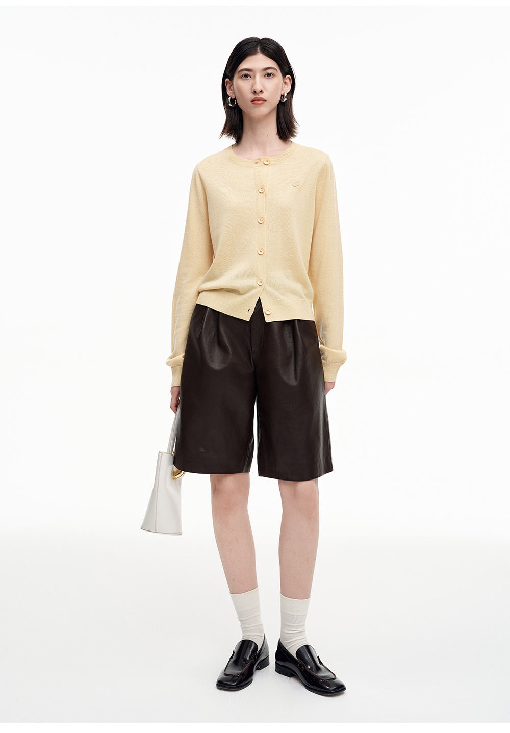 SELFWHO绵羊毛混纺笑脸绣章针织开衫女2025秋季新款保暖圆领上衣