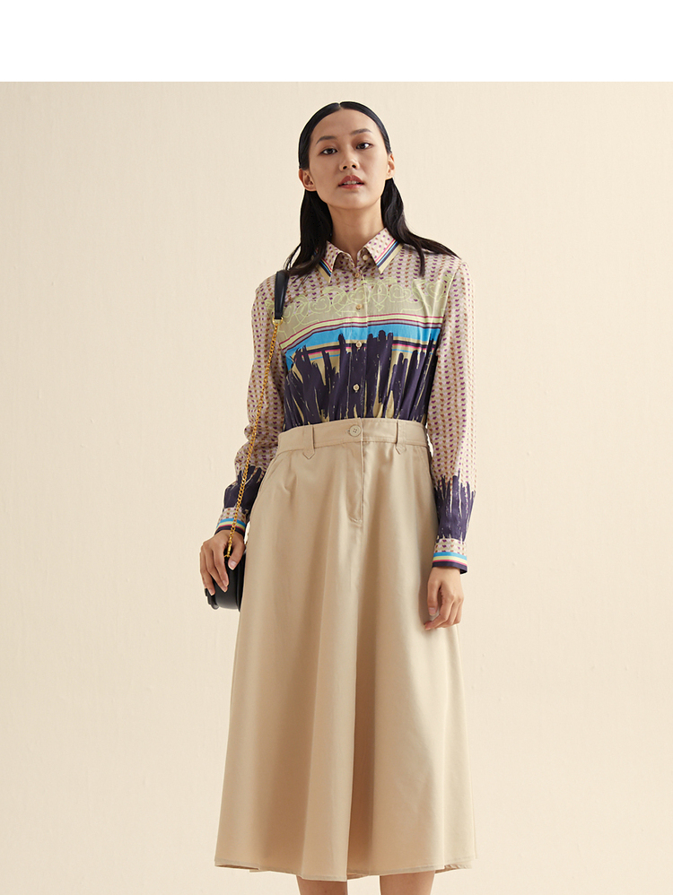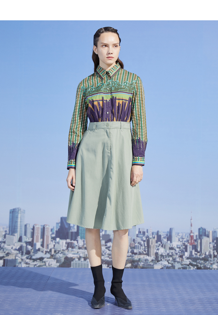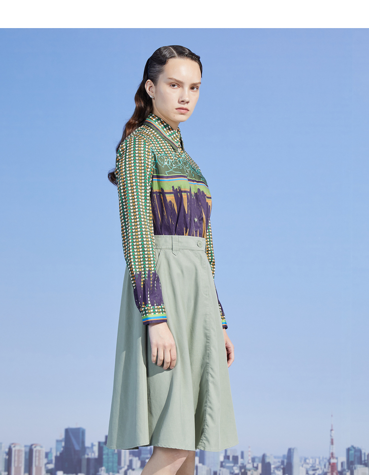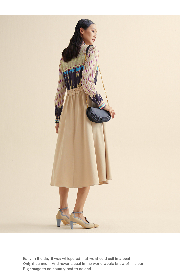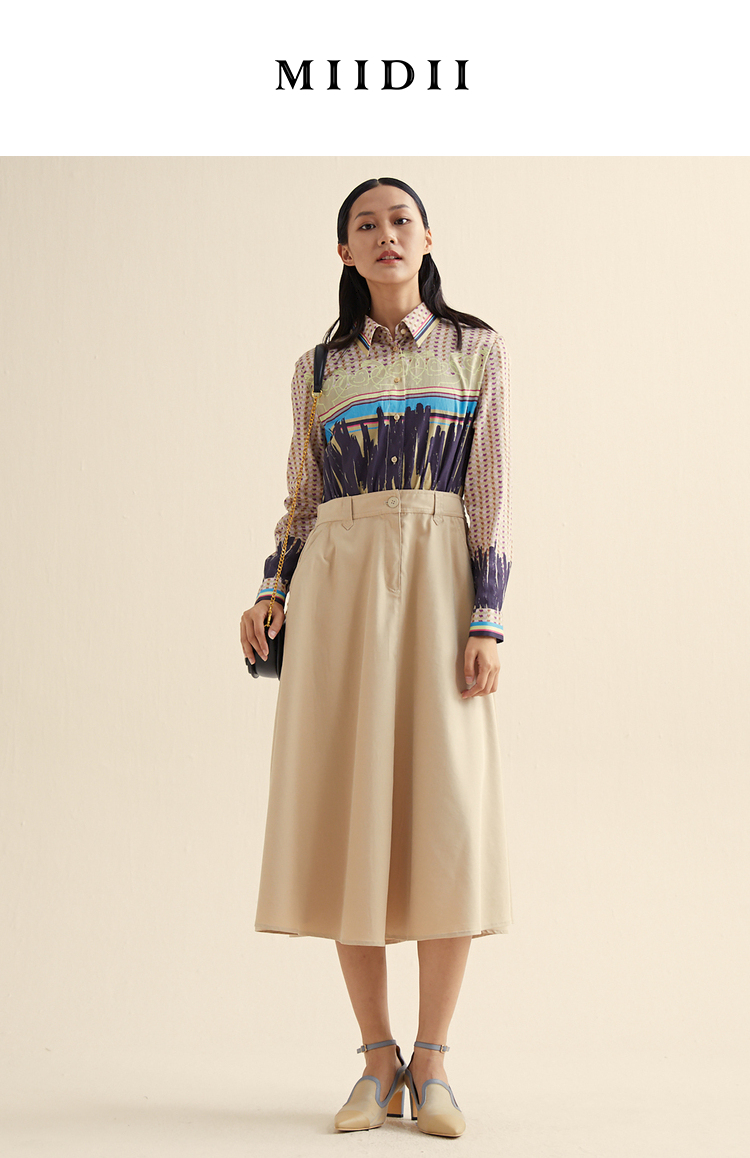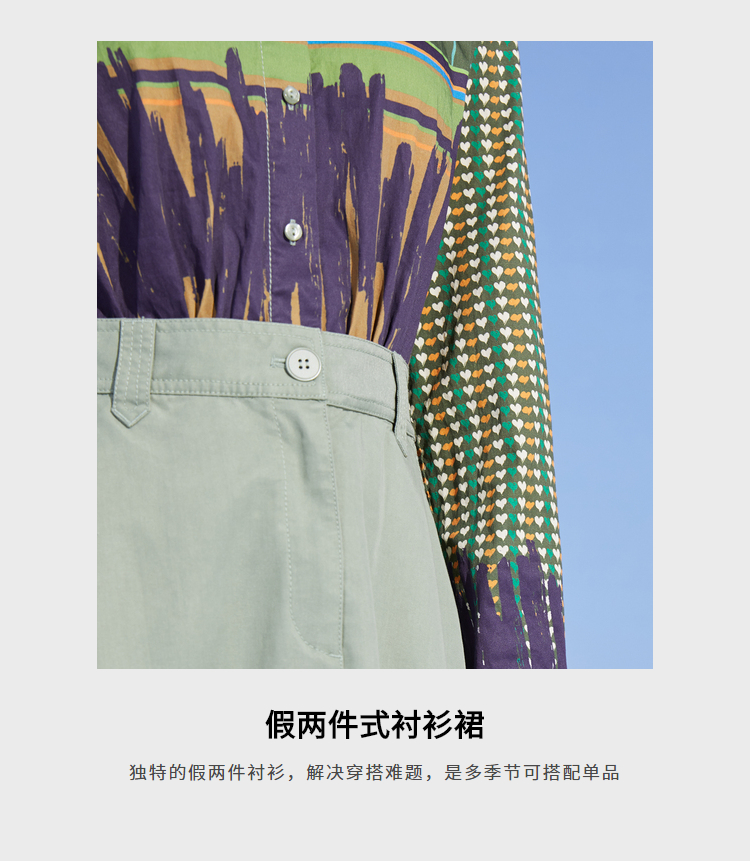 MIIDII/谜底小爱心印花假两件天丝收腰连衣裙长裙211ML0110