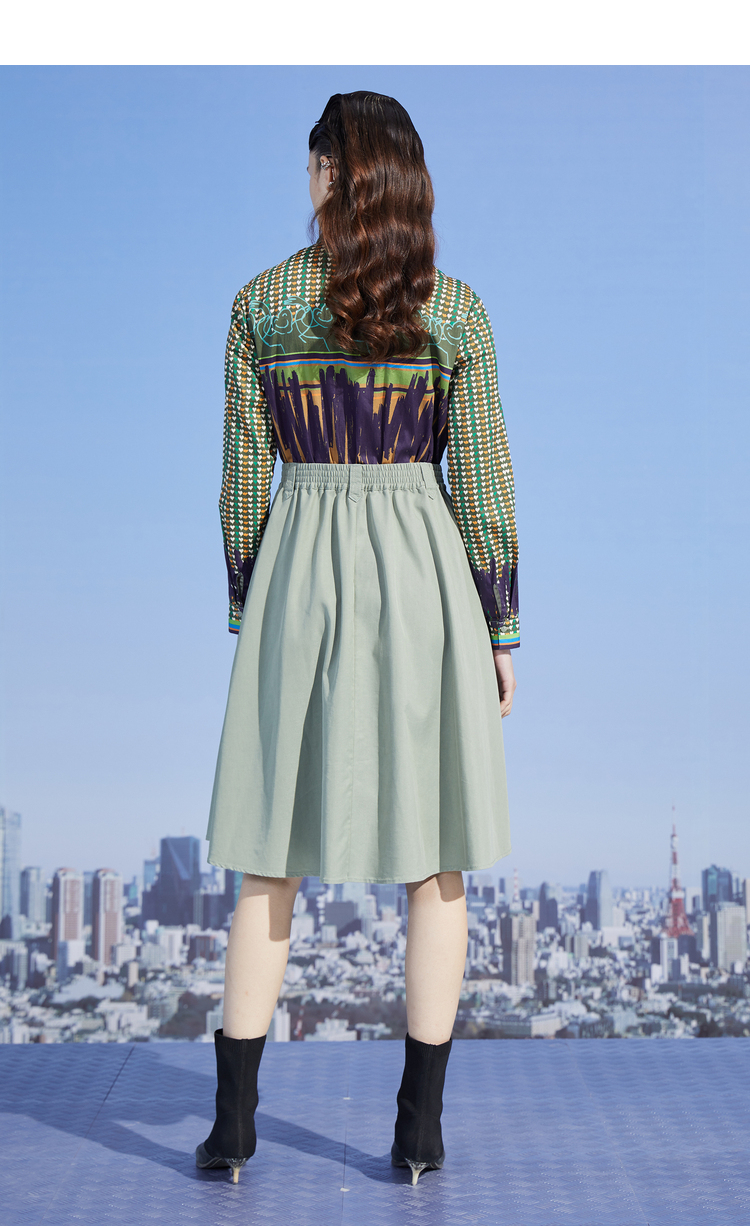 谜底连衣裙长袖2026春季新品A型中长抽绳荷叶边衬衫裙女261ML0080