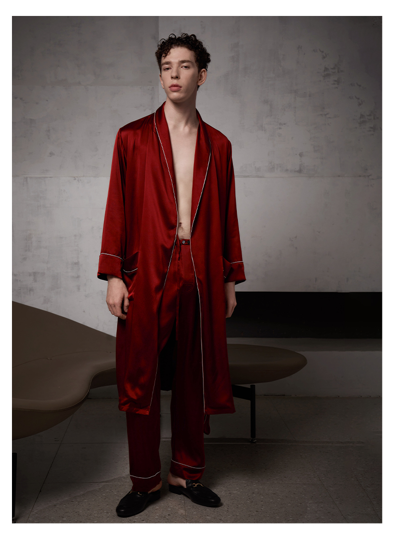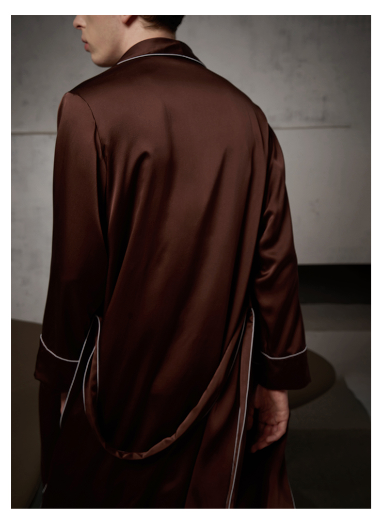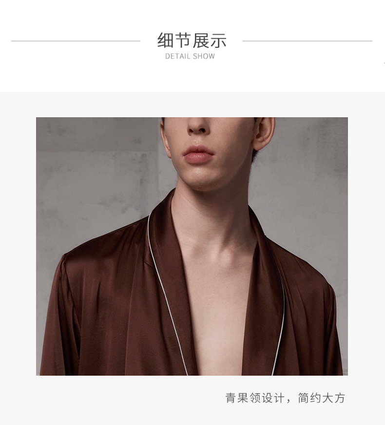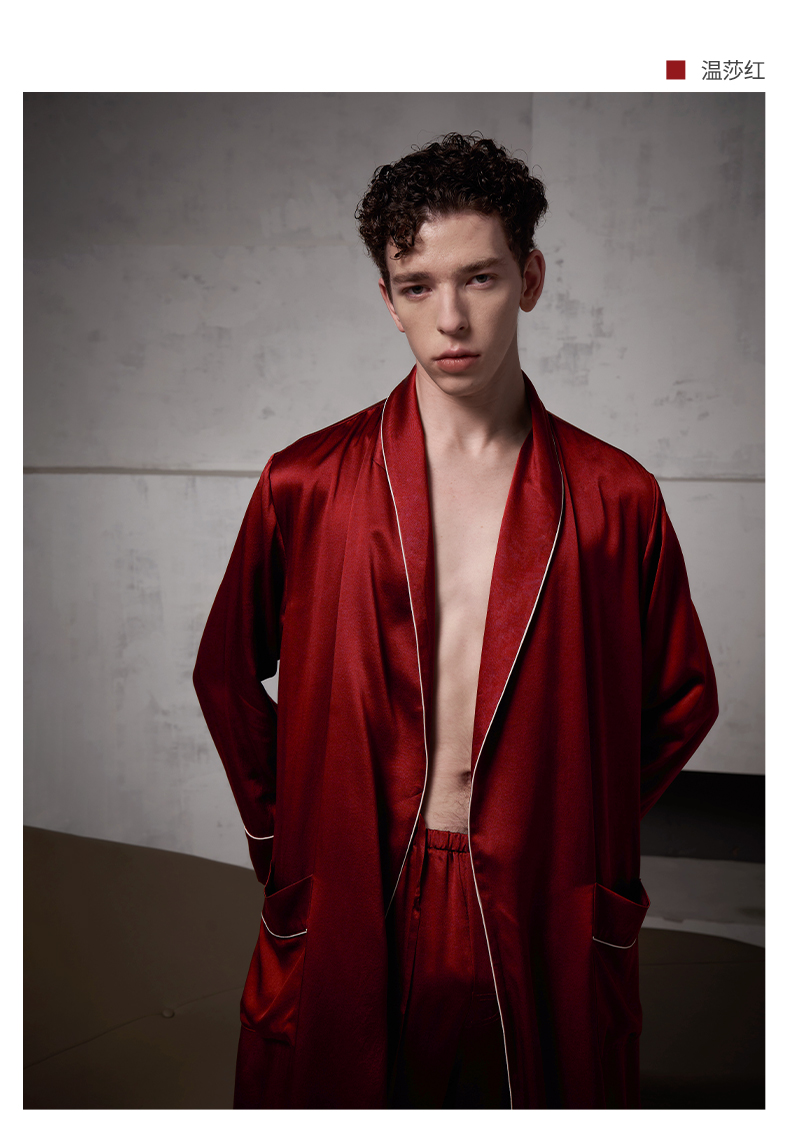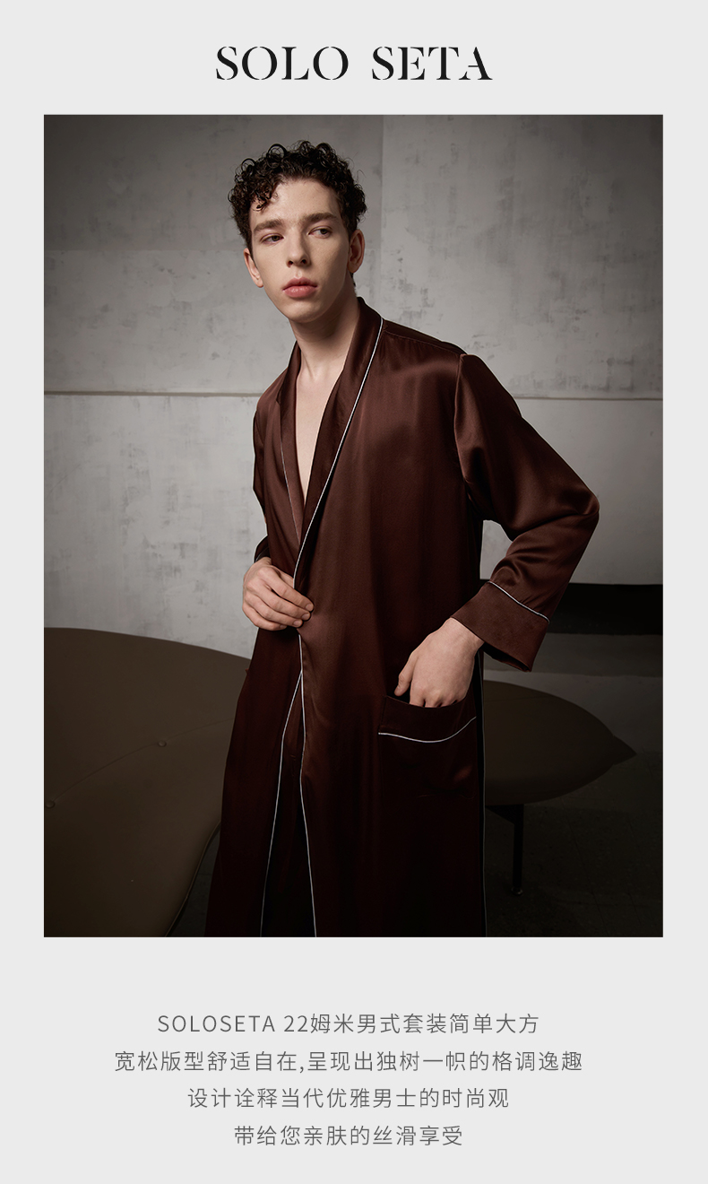 Solo seta22姆米真丝睡袍男长袖中长款桑蚕丝丝绸家居服素色