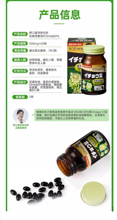 【日本直邮】Noguchi 野口医学研究所 银杏叶提取物DHA/EPA精华胶囊 60粒