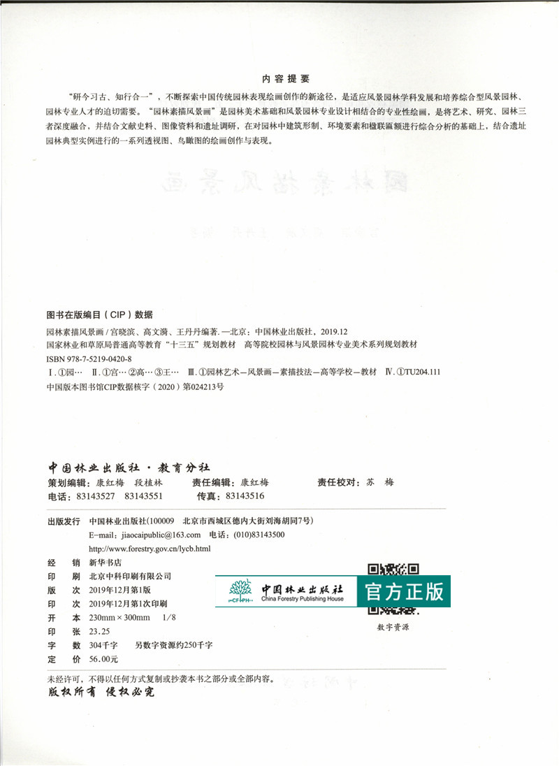 园林素描风景画 宫晓滨 高文漪 王丹丹 0420 国家林业和草原局普通高等教育十三五规划教育 园林与风景园林专业 中国林业出版社