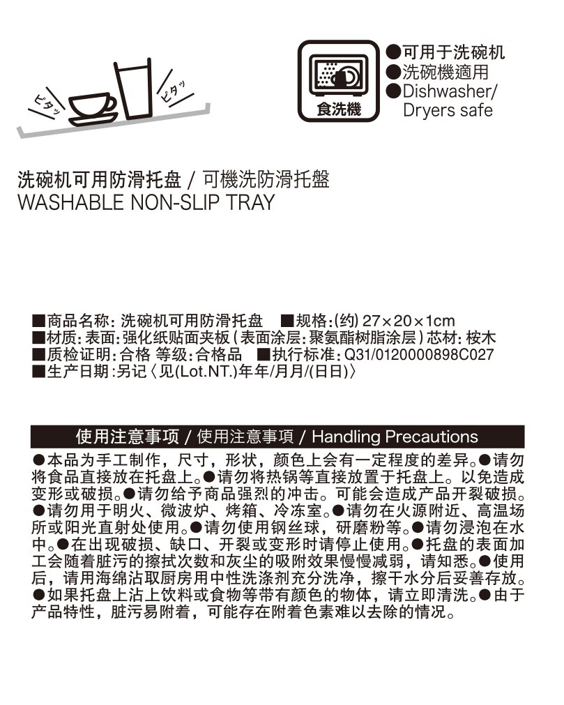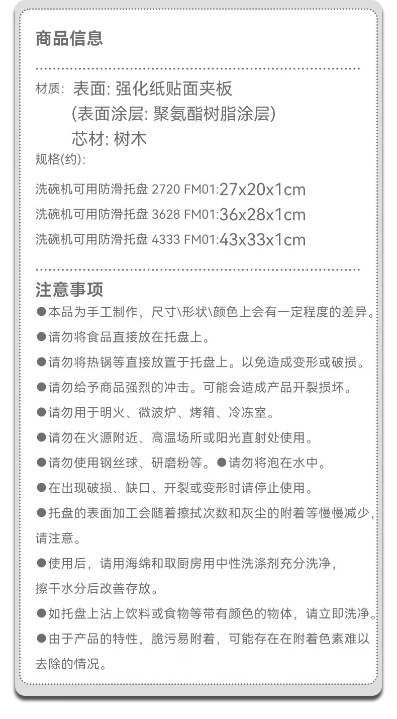 长方形木质茶杯盘子水果洗碗机可用防滑托盘FM01