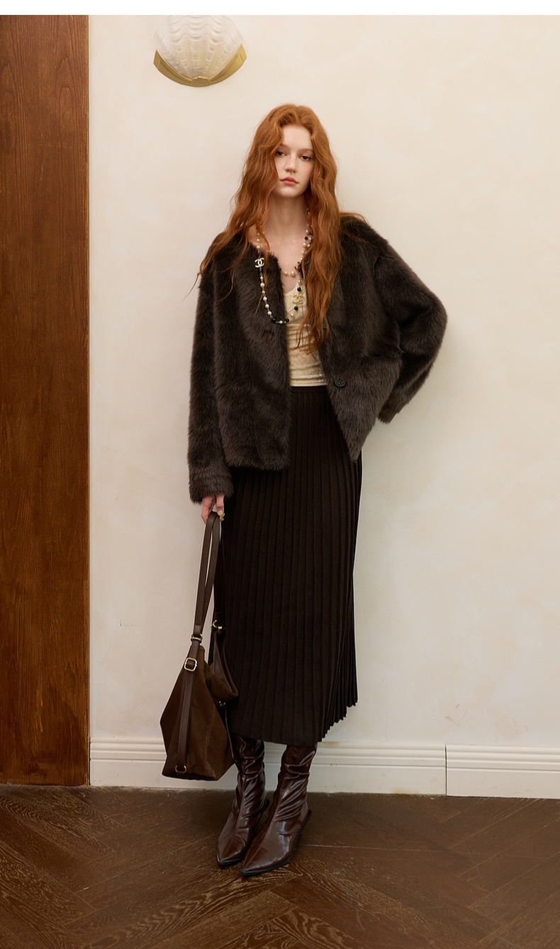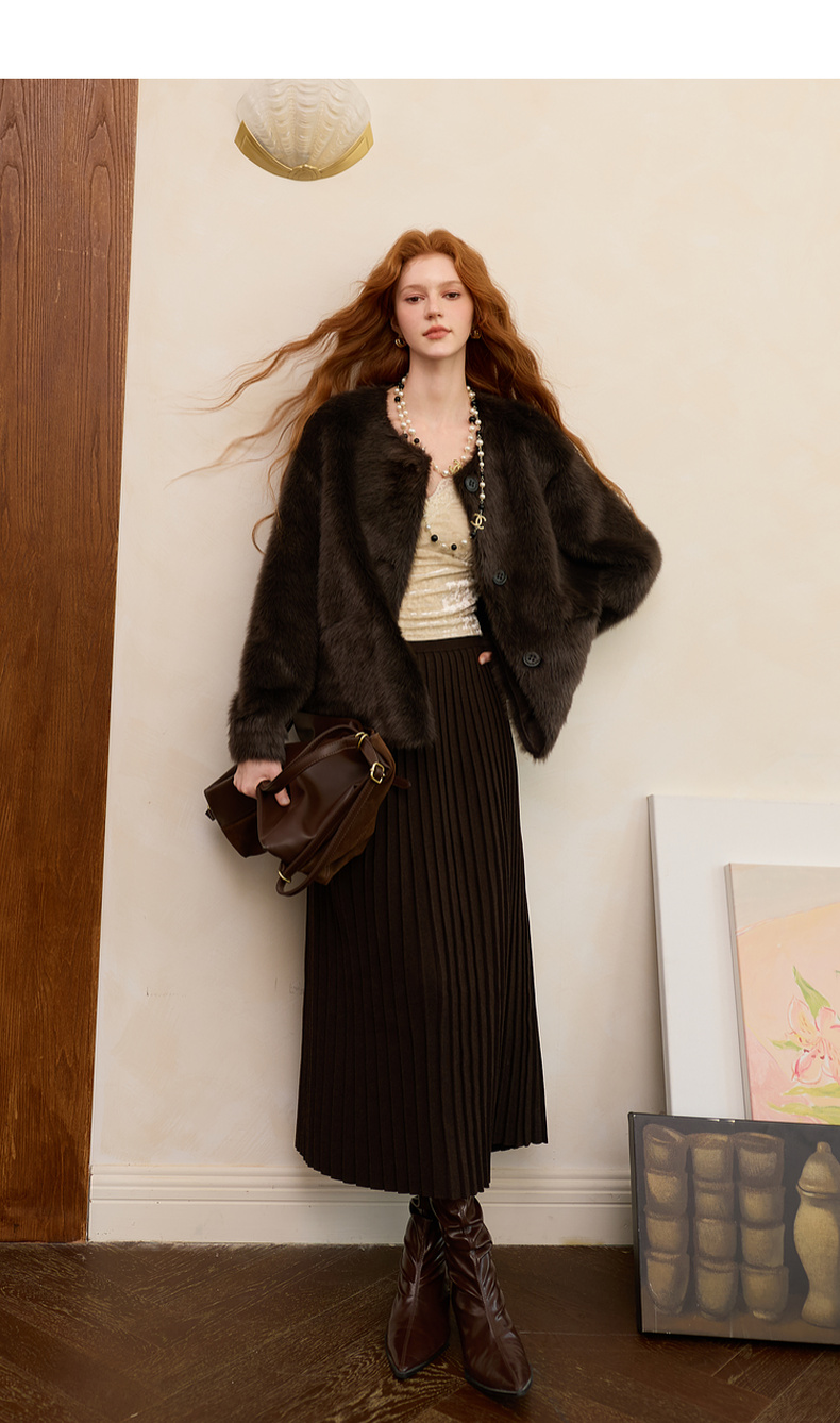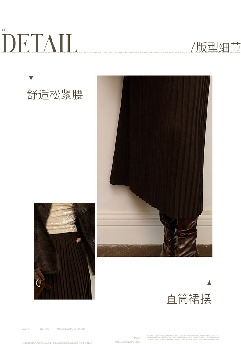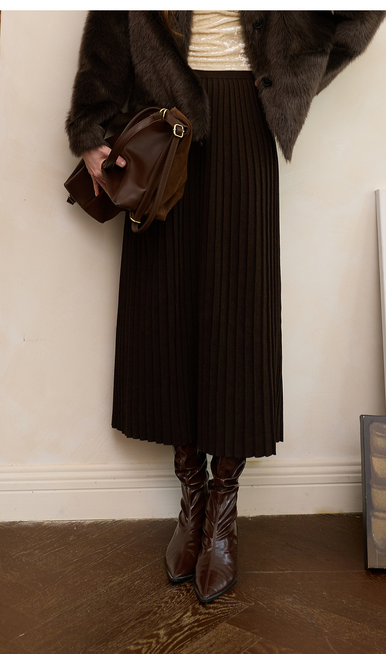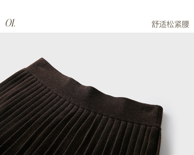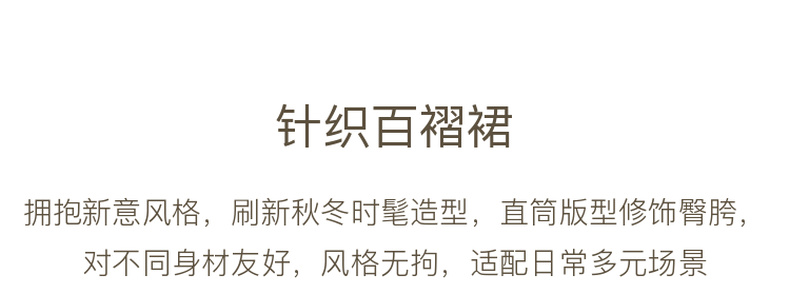 三彩2025冬季新款针织半身裙百褶裙松紧腰直筒裙长裙M