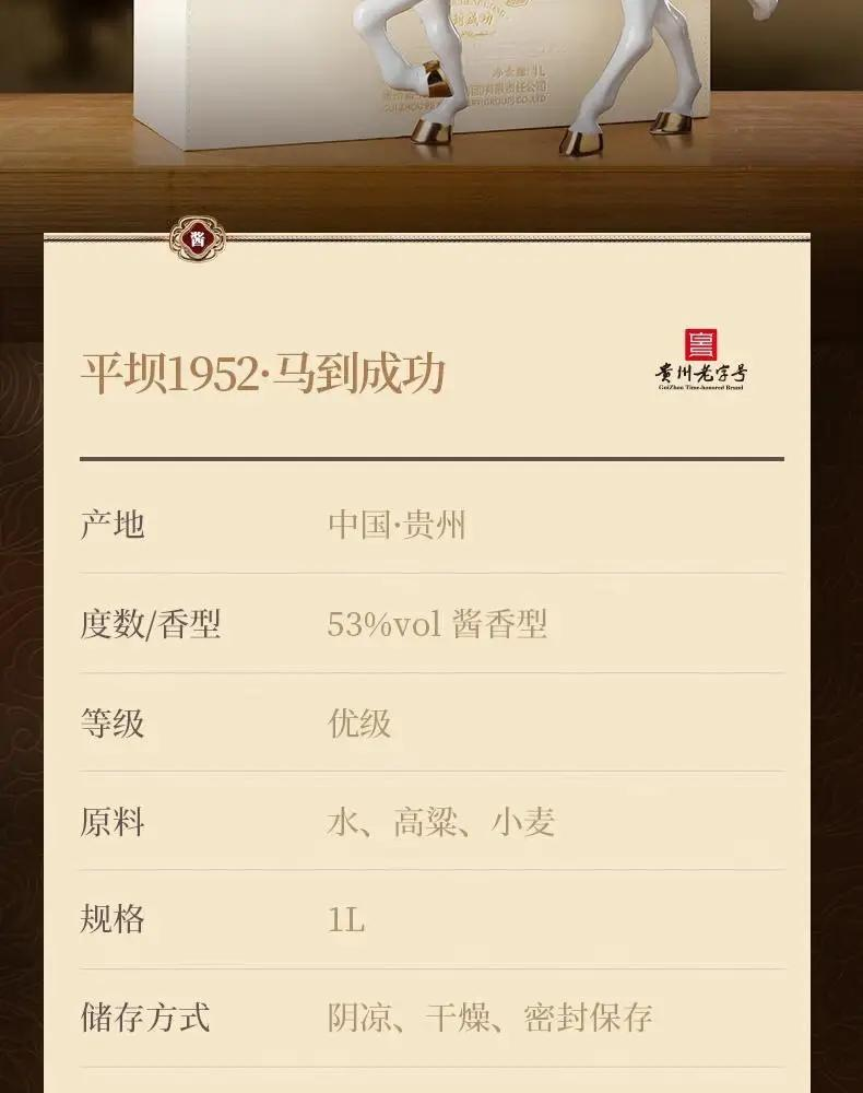 【摆柜礼赠】平坝酱酒 马到成功 酱香型白酒 53度 1L