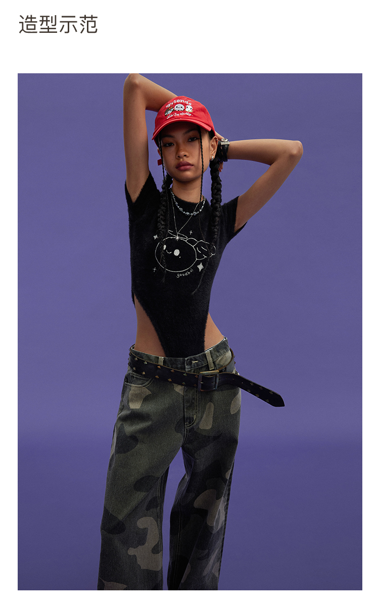 GOODBAI GOODEES 新款个性印花时尚宽松直筒裤长裤