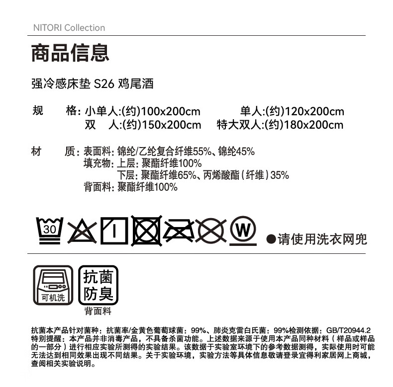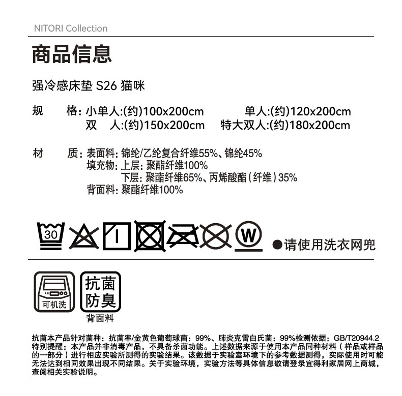 NITORI宜得利家居 夏天强凉感软垫抗菌防臭床垫强冷感床垫保护垫 S26