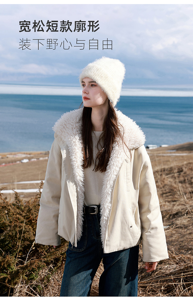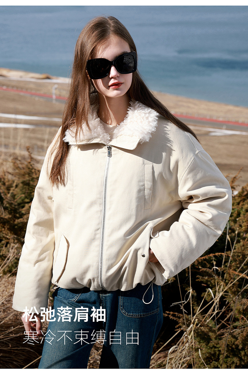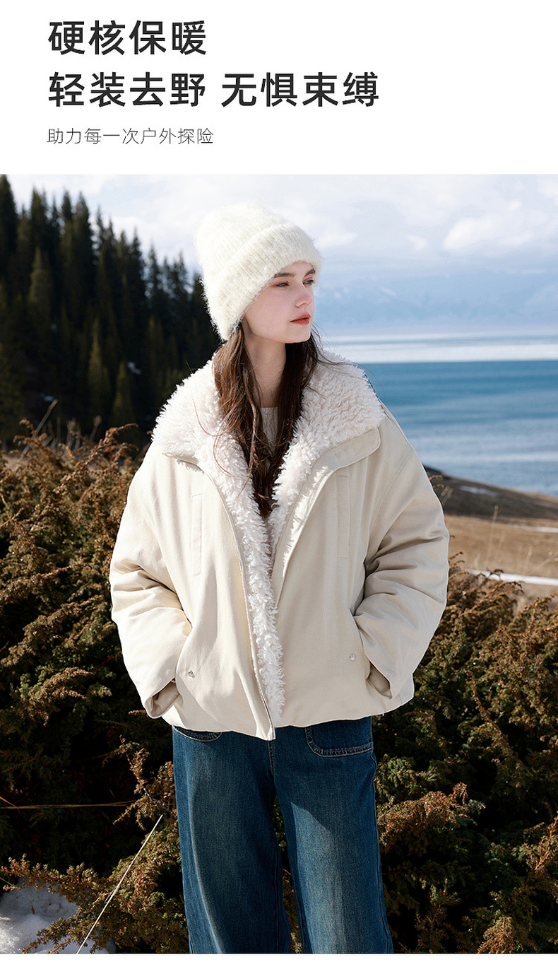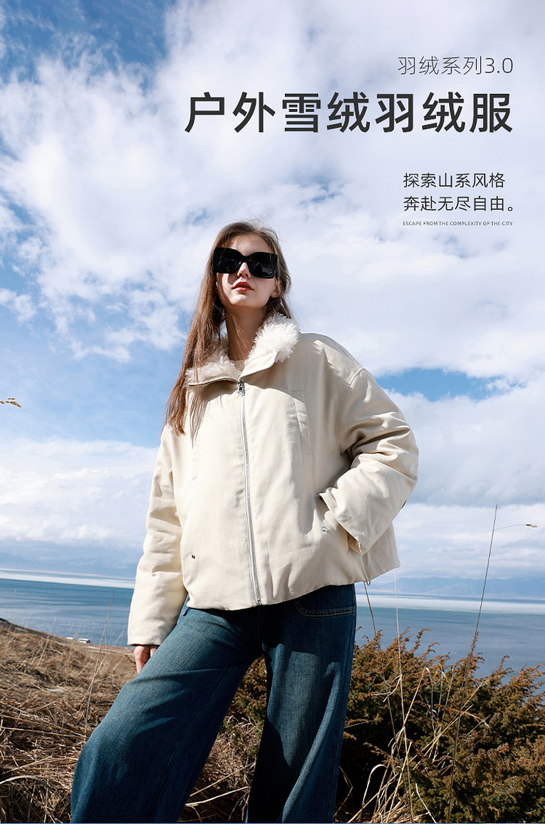 三彩2025冬季新款90白鸭绒羽绒服派克服户外短款宽松工装M