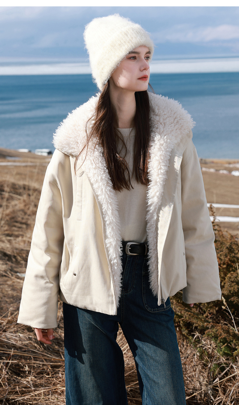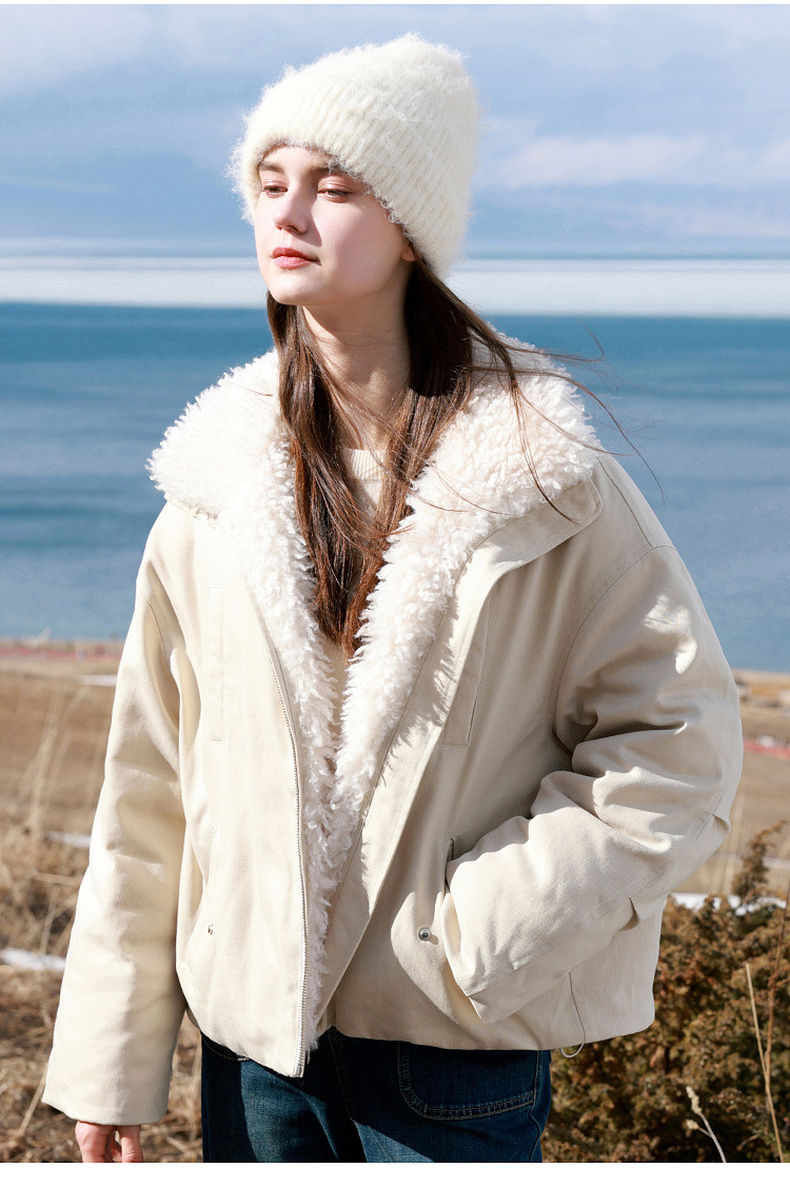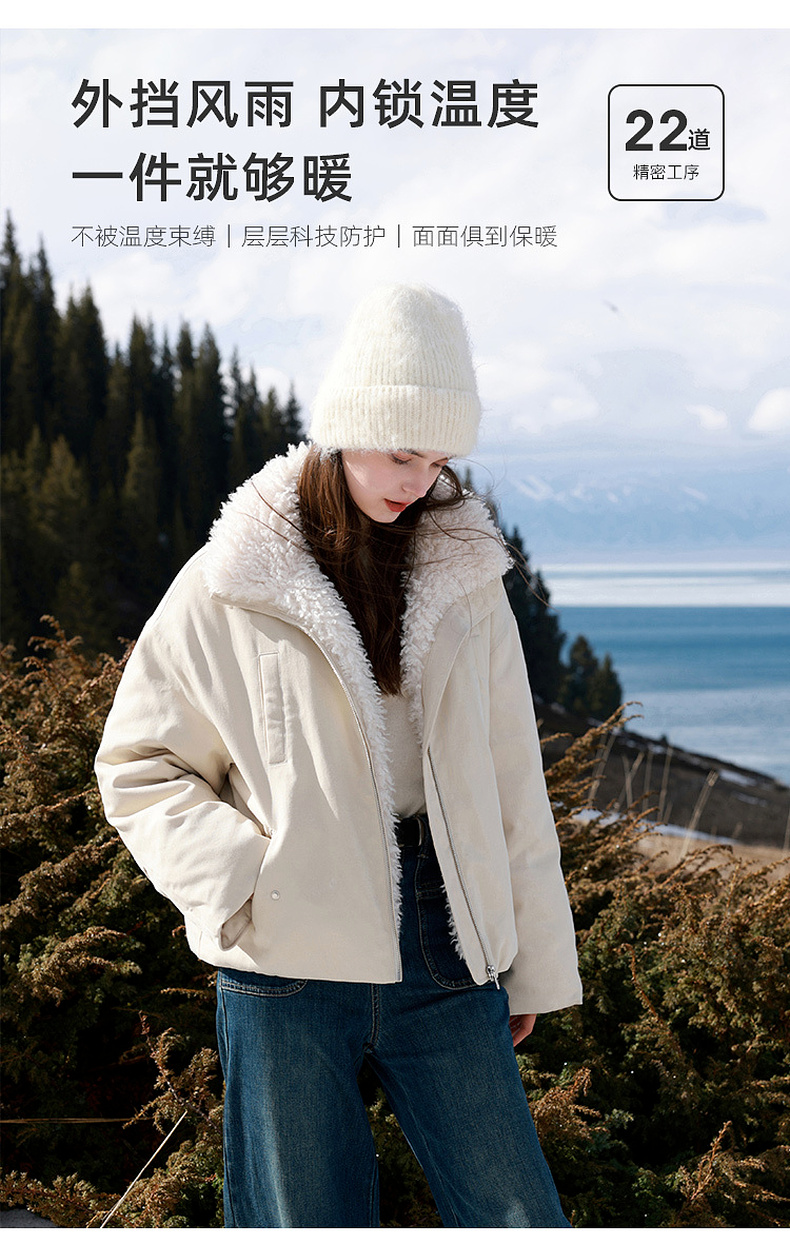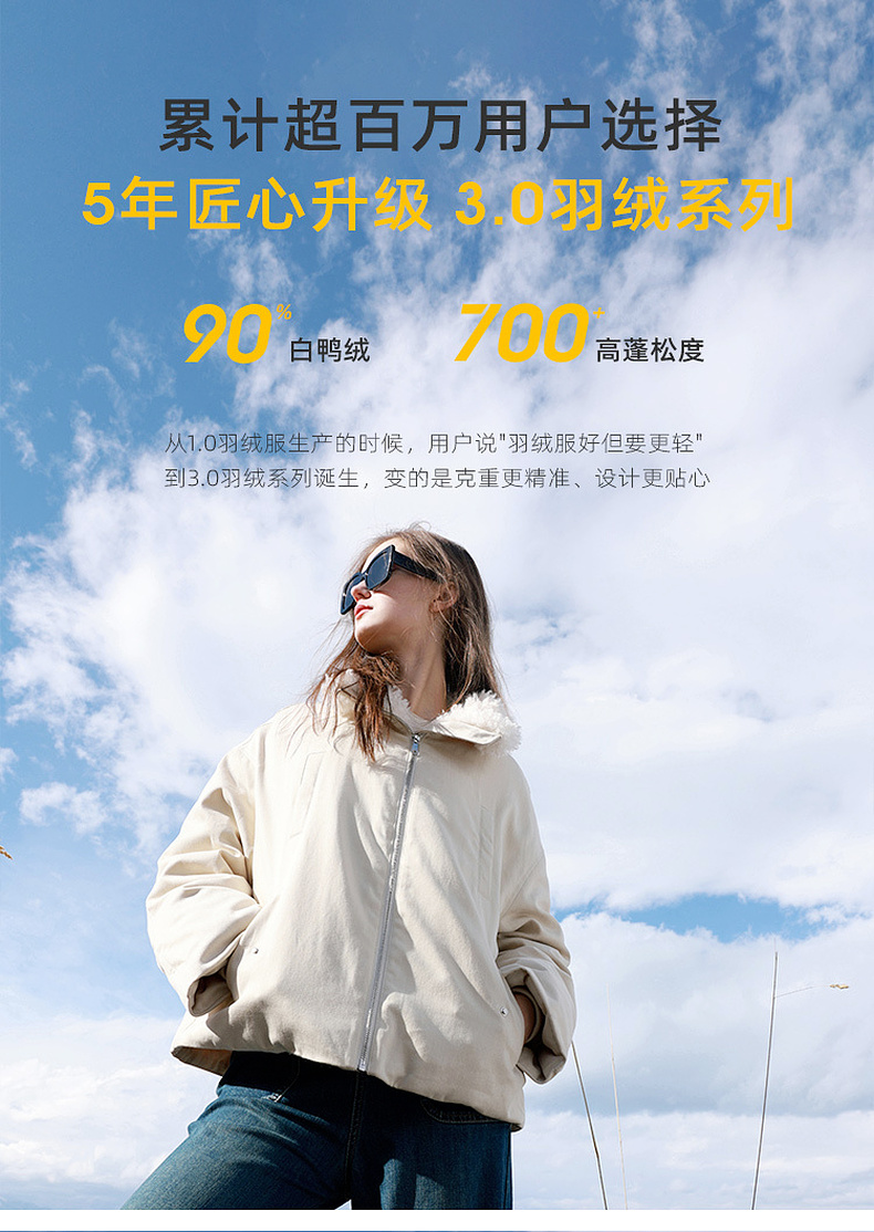 三彩2025冬季新款90白鸭绒羽绒服派克服户外短款宽松工装M