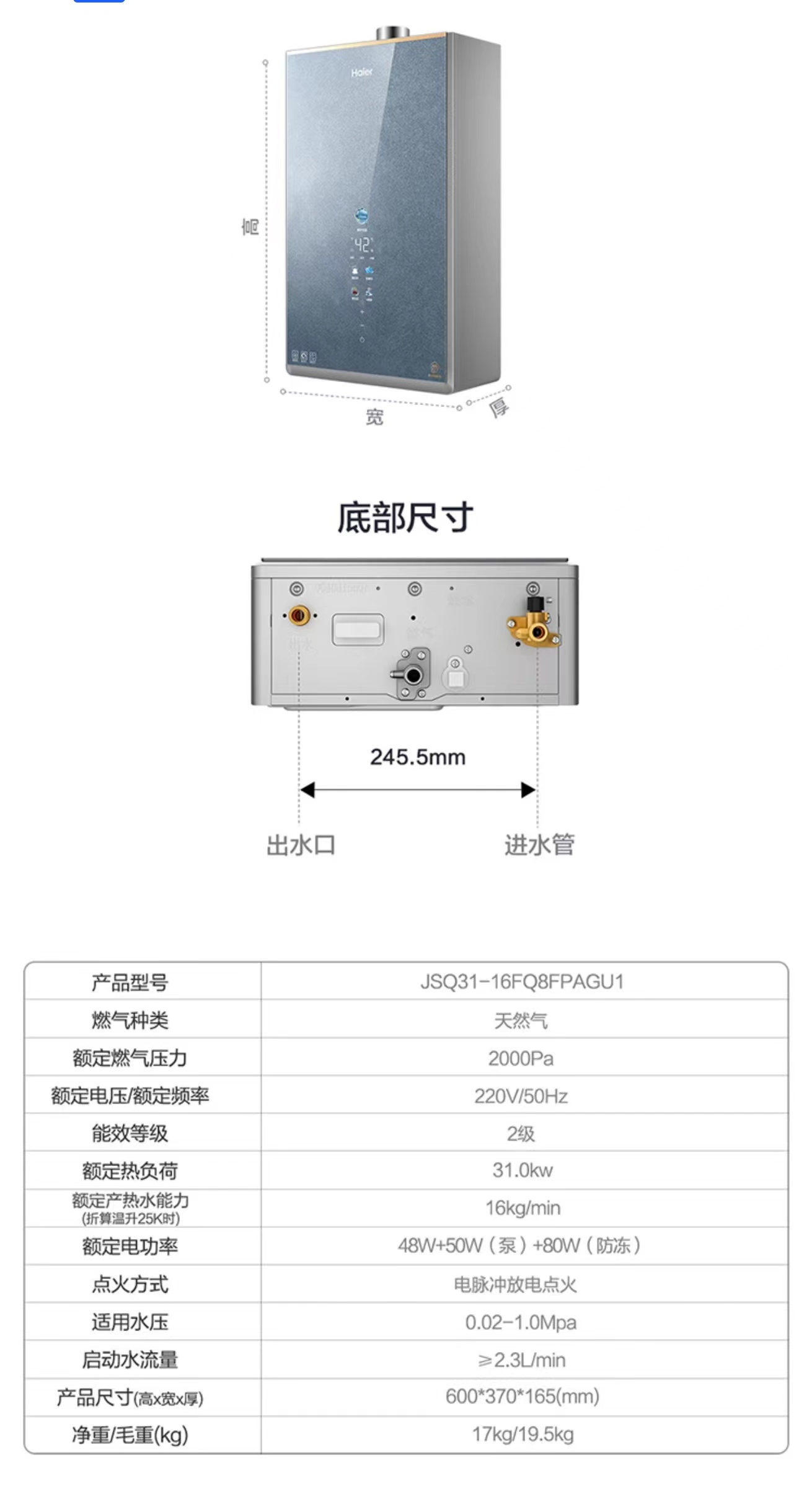 海尔/燃气热水器/JSQ31-16FQ8FPAGU1
