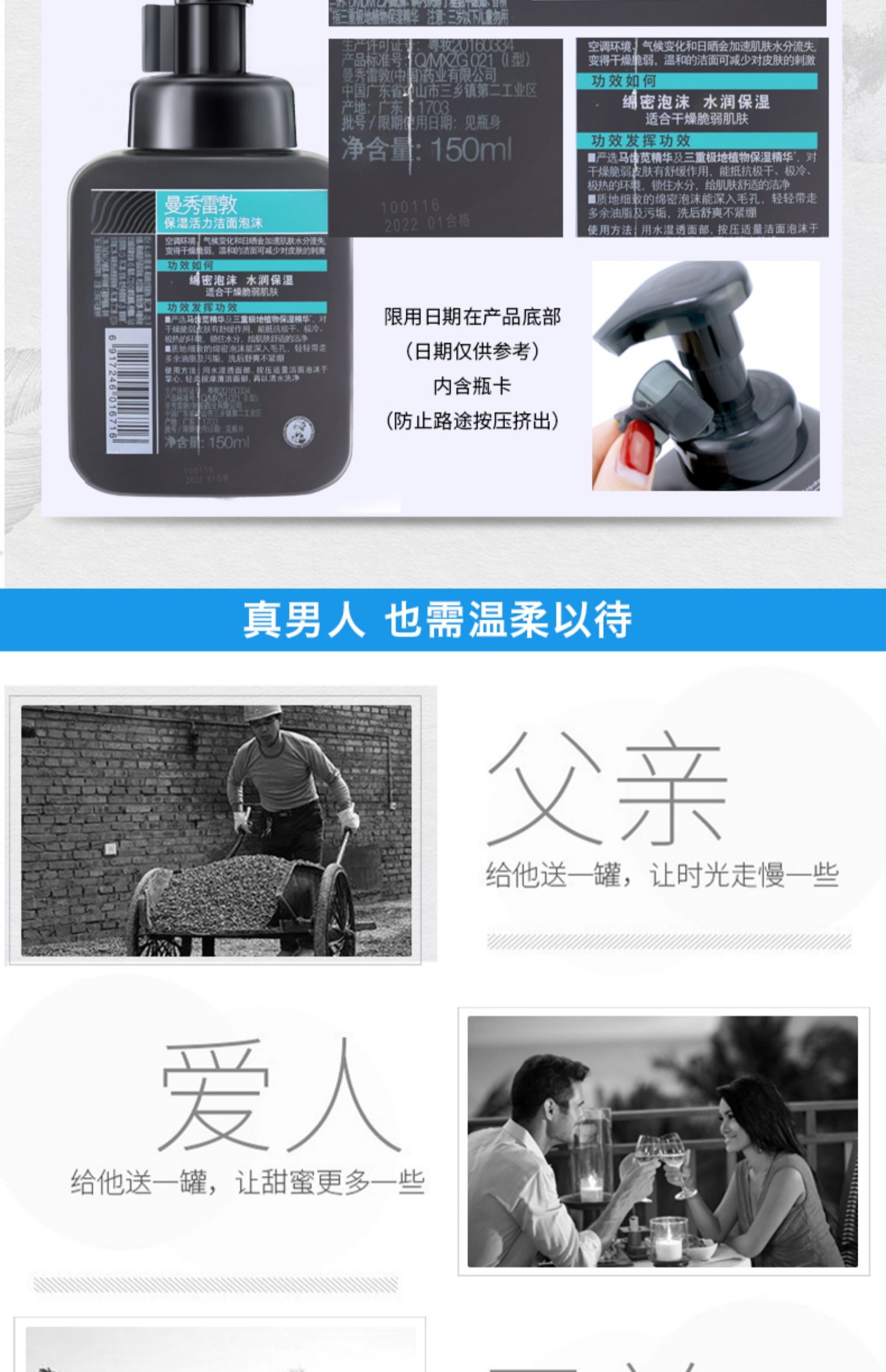 曼秀雷敦男士保湿活力洁面洁面泡沫150ml