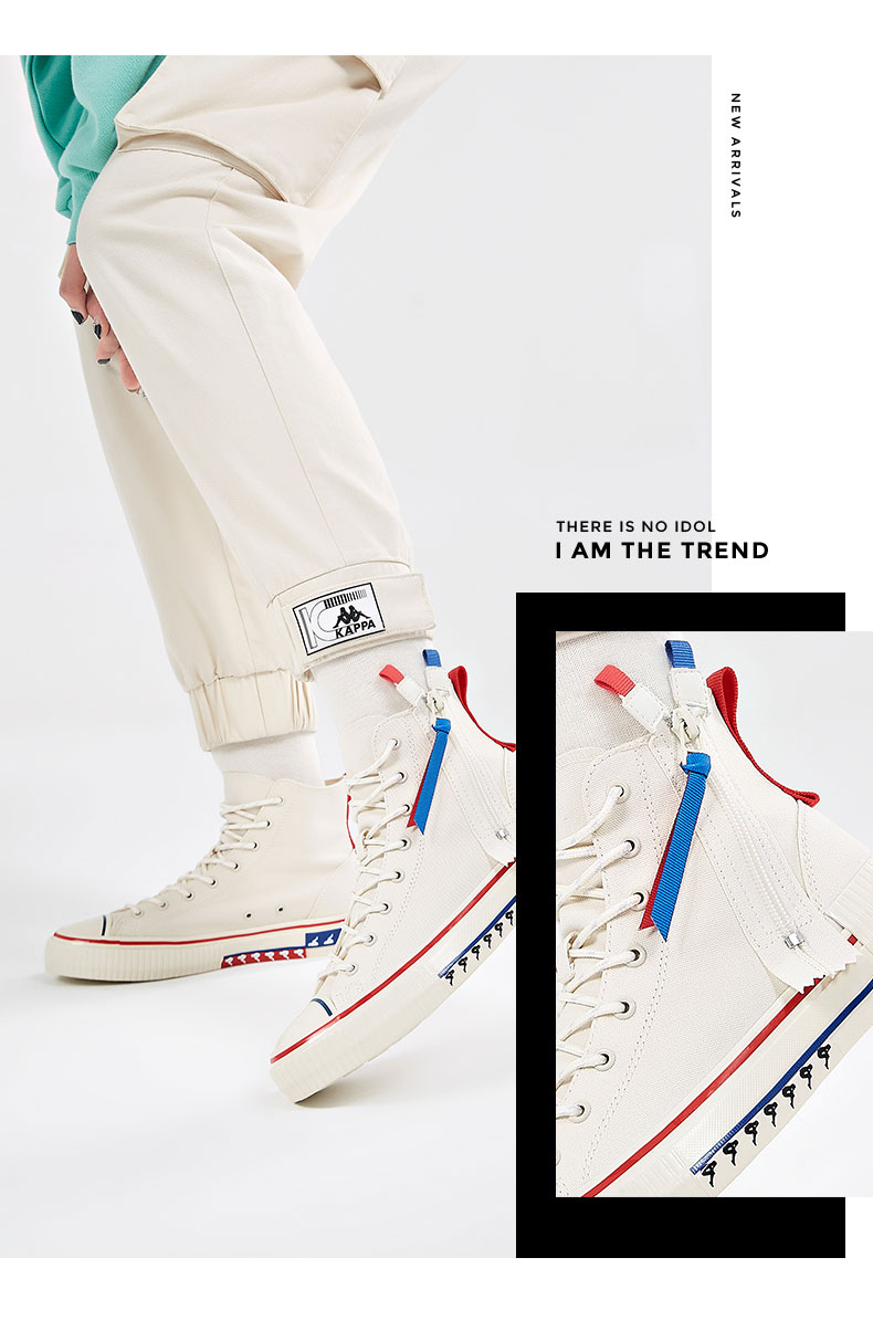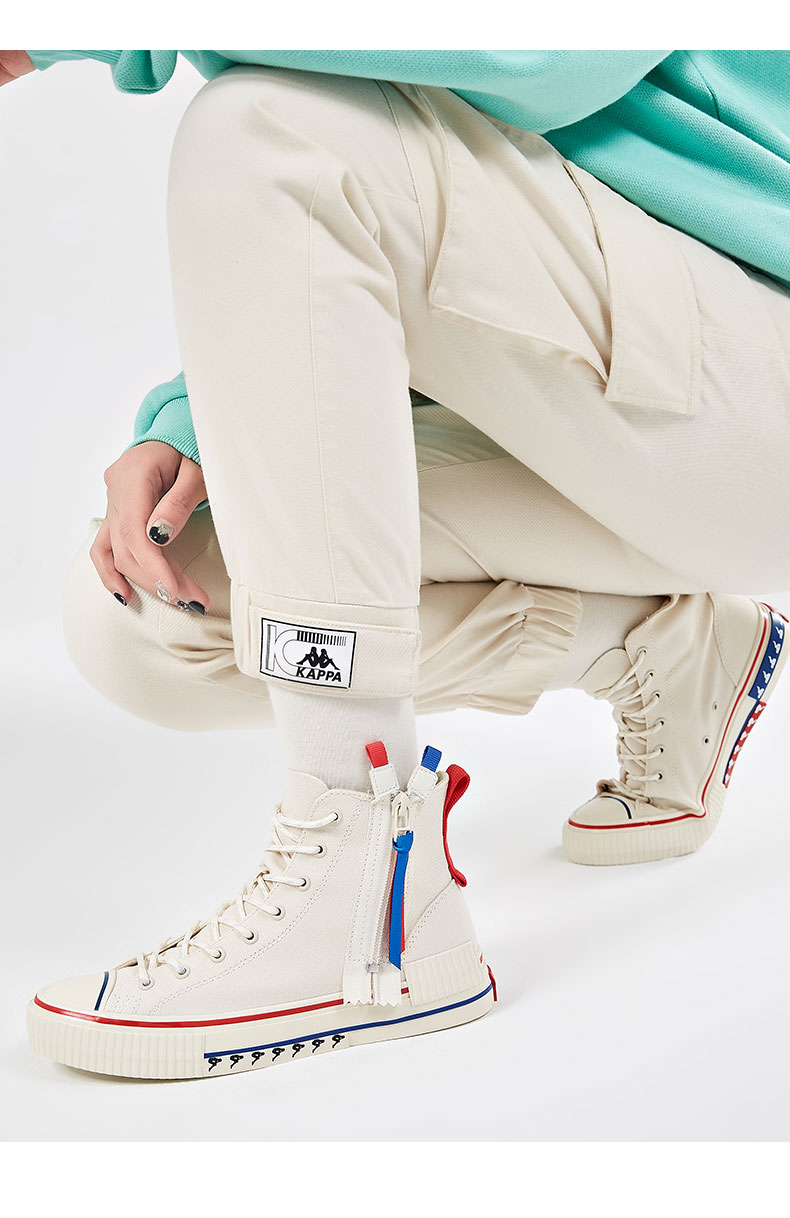 Kappa卡帕帆布鞋2022新款情侣男女高帮板鞋休闲小白鞋K0CW5VS30