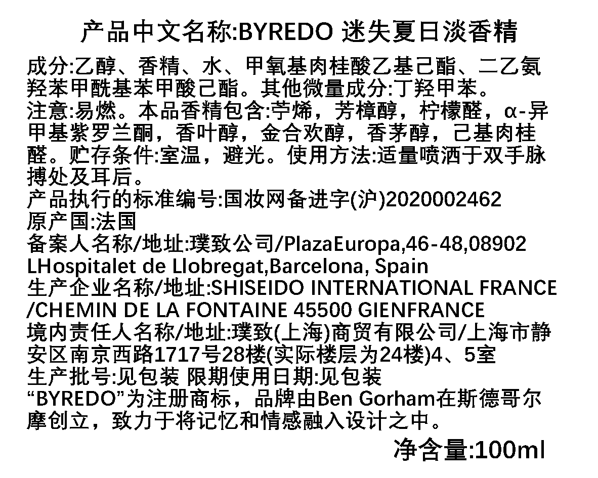 BYREDO百瑞德/柏芮朵 SUNDAZED/夏日棉花糖香水