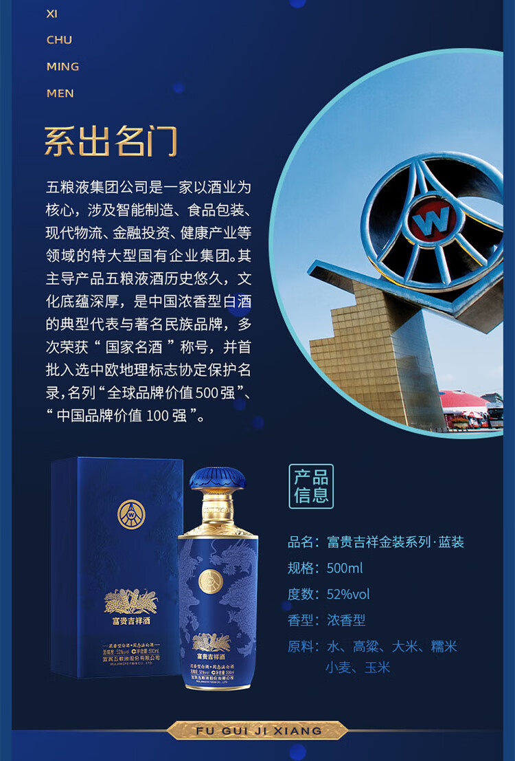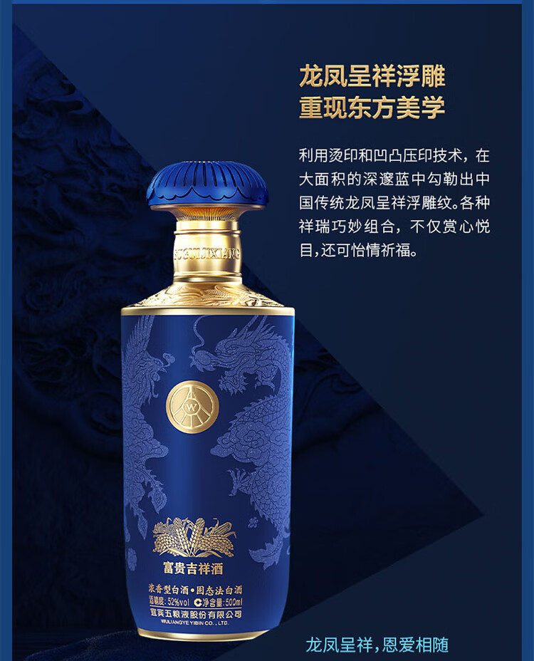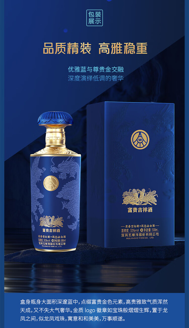 五粮液 富贵吉祥 蓝装 52度 浓香型白酒(单瓶装)